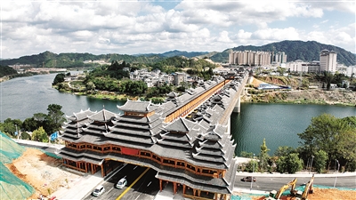 昨日上午,三江侗族自治县举行宜阳风雨桥通车仪式,70辆柳产新能源汽车缓缓从新桥通行,市民及游客纷纷登桥观赏留影。据了解,宜阳风雨桥是三江的重大项目之一,全长399.6米,宽28米,设双向四车道、双非机动车道、双人行道,上下立交,二层为人行休闲观景,中间有跨桥人行互通立交,通车后不仅为附近居民出行提供新的便捷通道,也成为侗乡一处新景观。