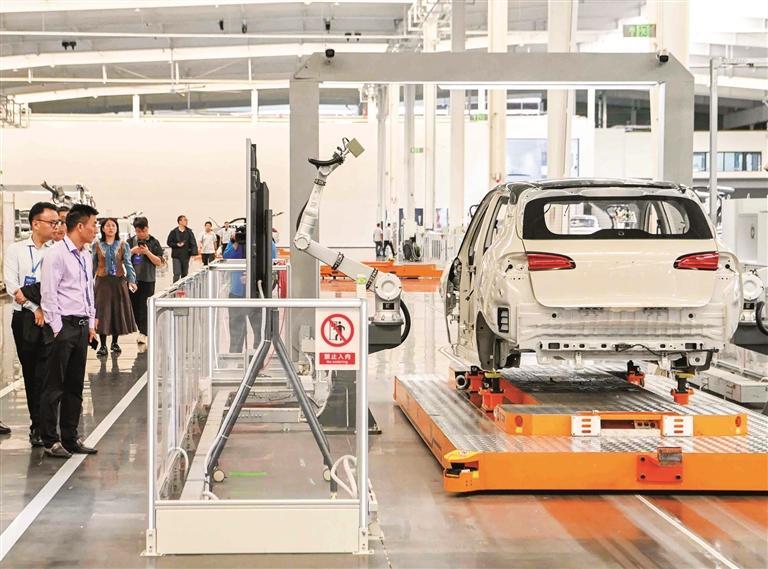 嘉宾在上汽通用五菱宝骏基地内的岛式精益制造工厂参观。全媒体记者 覃科 摄会场外展示的各类型机器人。 全媒体记者 覃科 摄10月27日至28日,柳州市...