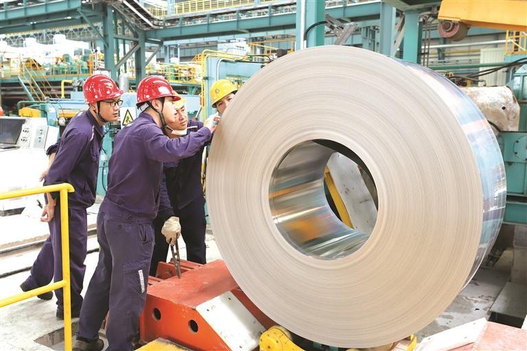 技术人员查看BA板卷表面质量。11月12日,随着一卷光亮如镜的不锈钢卷缓缓轧出,柳钢集团中金公司不锈钢BA板成功下线,标志着柳钢集团不锈钢产品家...