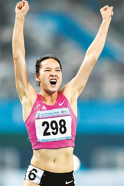 9月3日,广西柳州妹子韦永丽夺冠后庆祝。 当日,在天津举办的第十三届全运会田径项目女子100米决赛中,广西选手柳州妹韦永丽以11秒31的成绩夺...