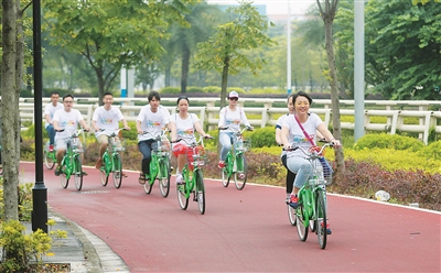 市民骑上公共自行车,绿色出行。日报记者 覃科 摄8月10日上午7时35分,家住阳光100城市广场10栋的居民陈涛,出门前用手机拍下“柳州蓝”,从小...