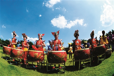 8月7日,广西柳州市柳南区太阳村镇西鹅小学的学生在练习高沙锣鼓。 高沙锣鼓因流传于广西柳州市柳南区太阳村镇西鹅村高沙屯而得名,其曲目...