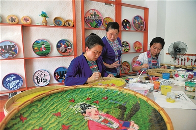 7月24日,三江侗族自治县侗族农民画艺术馆内,创作人员在竹制簸箕上认真作画(如图)。 据艺术馆“馆主”杨梅香介绍,以前农民画都是在纸上画...