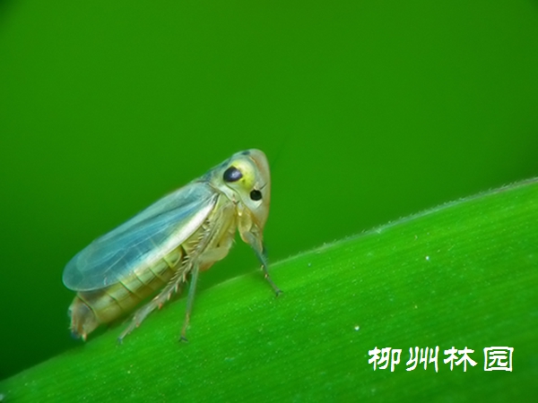 叶蝉属同翅目、叶蝉科。在目前柳州主要发生的叶蝉类,其危害木棉和秋风,该虫主要以成虫或若虫刺吸植株的汁液,使叶片出现淡白色斑点,危害严重时斑点呈斑块状,或刺伤表皮,使枝条叶片枯萎。近期在柳州有盛发趋势。