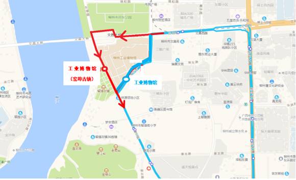 取消一五八医院往市中心方向的柳东路“工业博物馆”站,增设一五八医院往市中心方向蟠龙路的“工业博物馆(窑埠古镇)”站点。