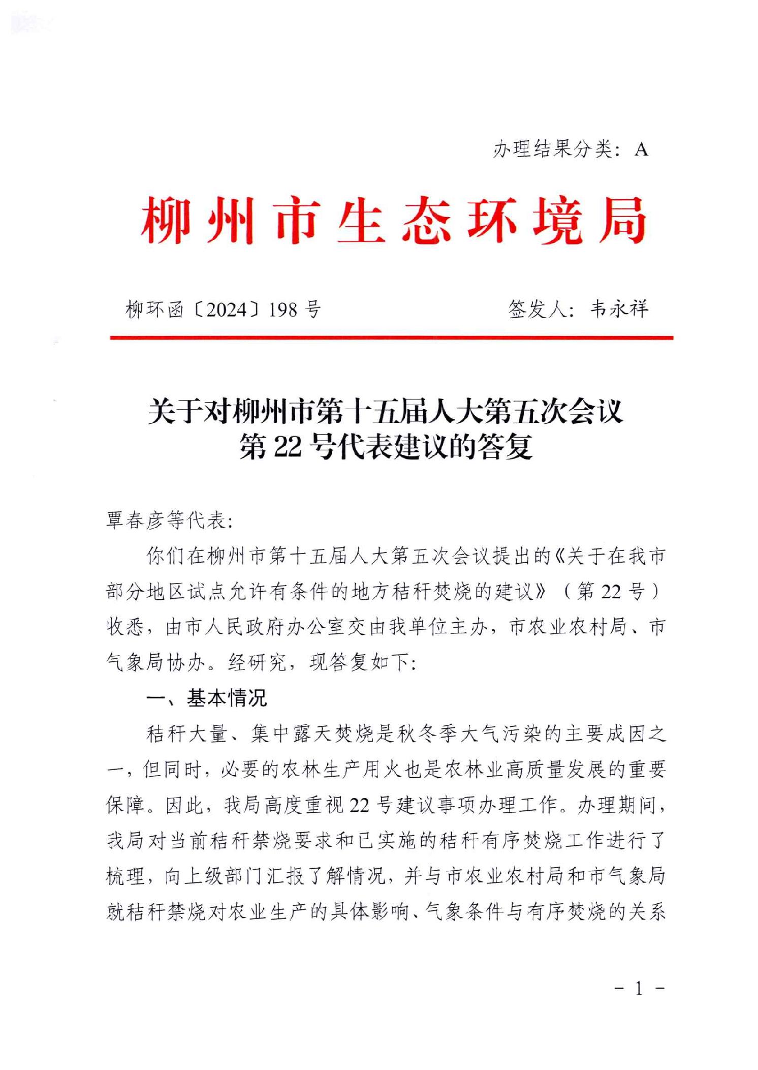 市生态环境局关于对柳州市第十五届人大第五次会议第22号代表建议的答复