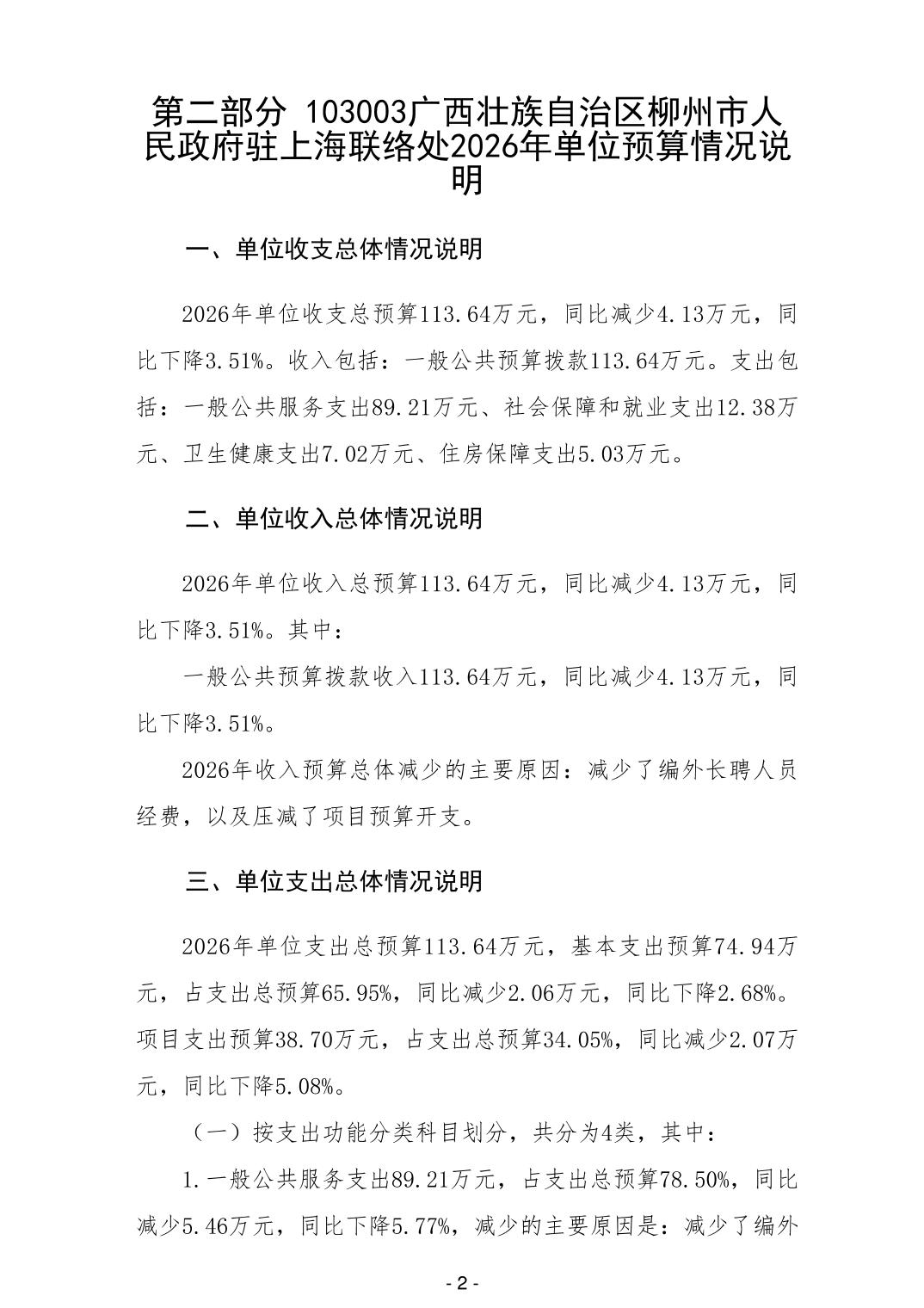103003广西壮族自治区柳州市人民政府驻上海联络处2026年单位预算公开说明.pdf