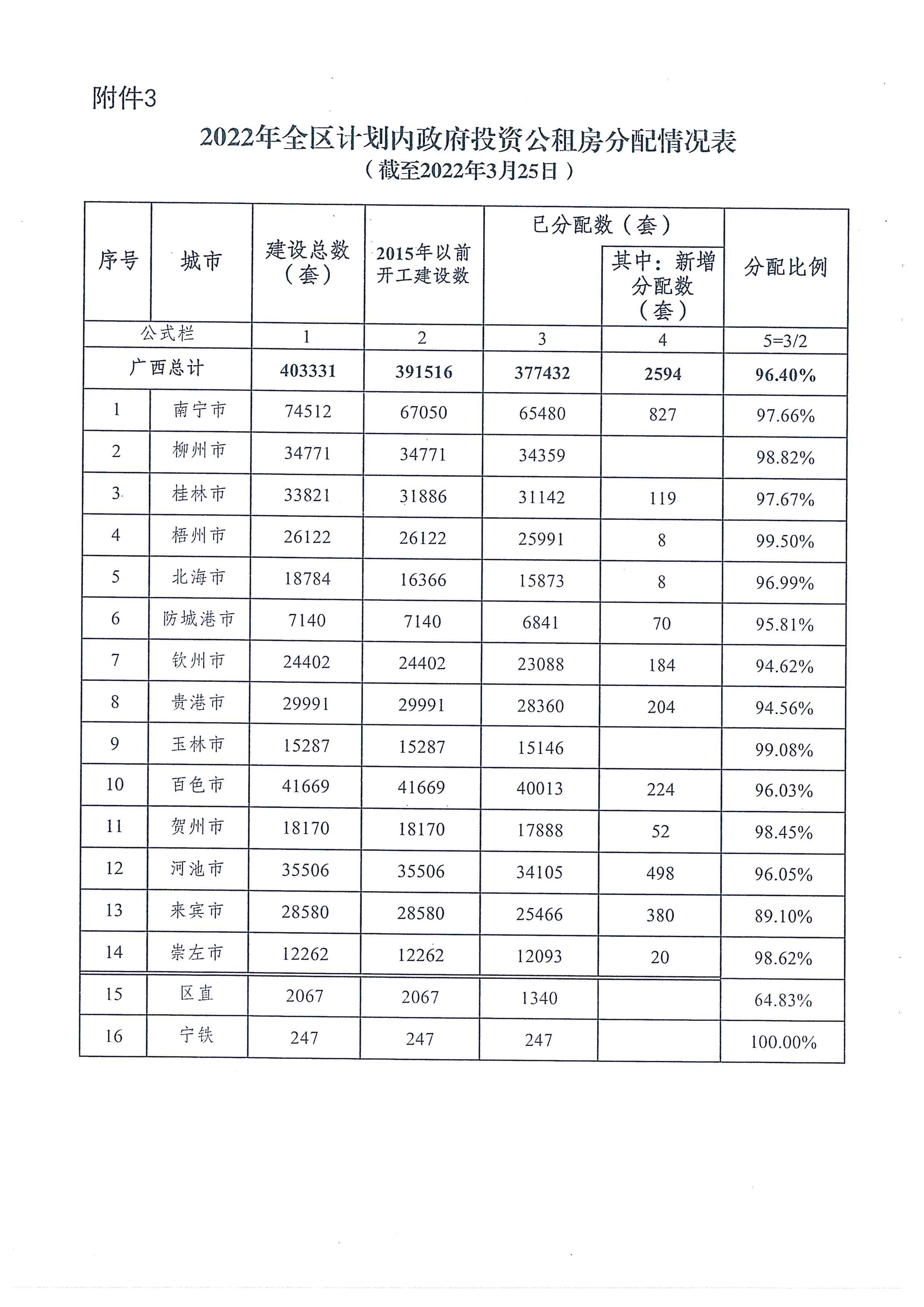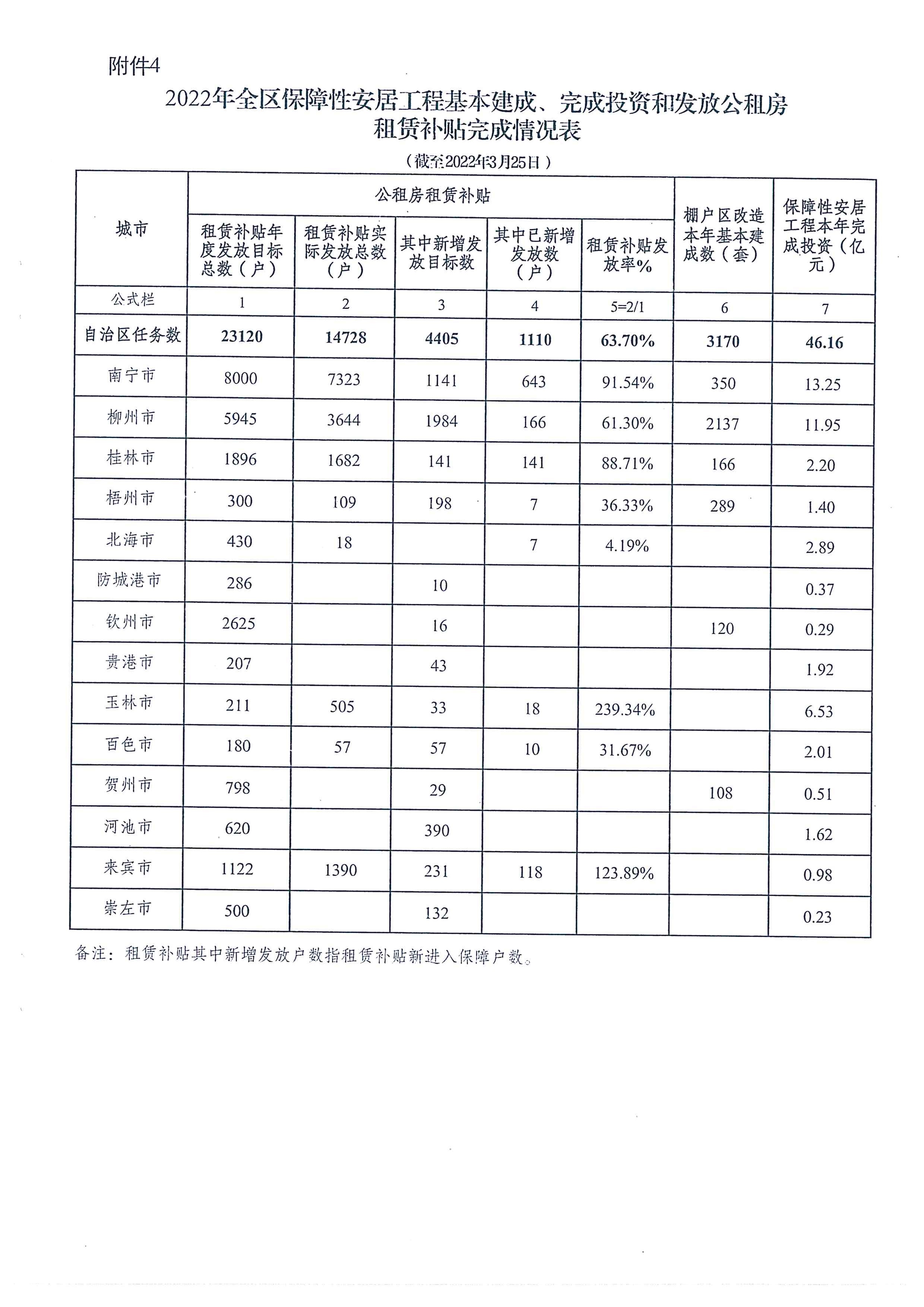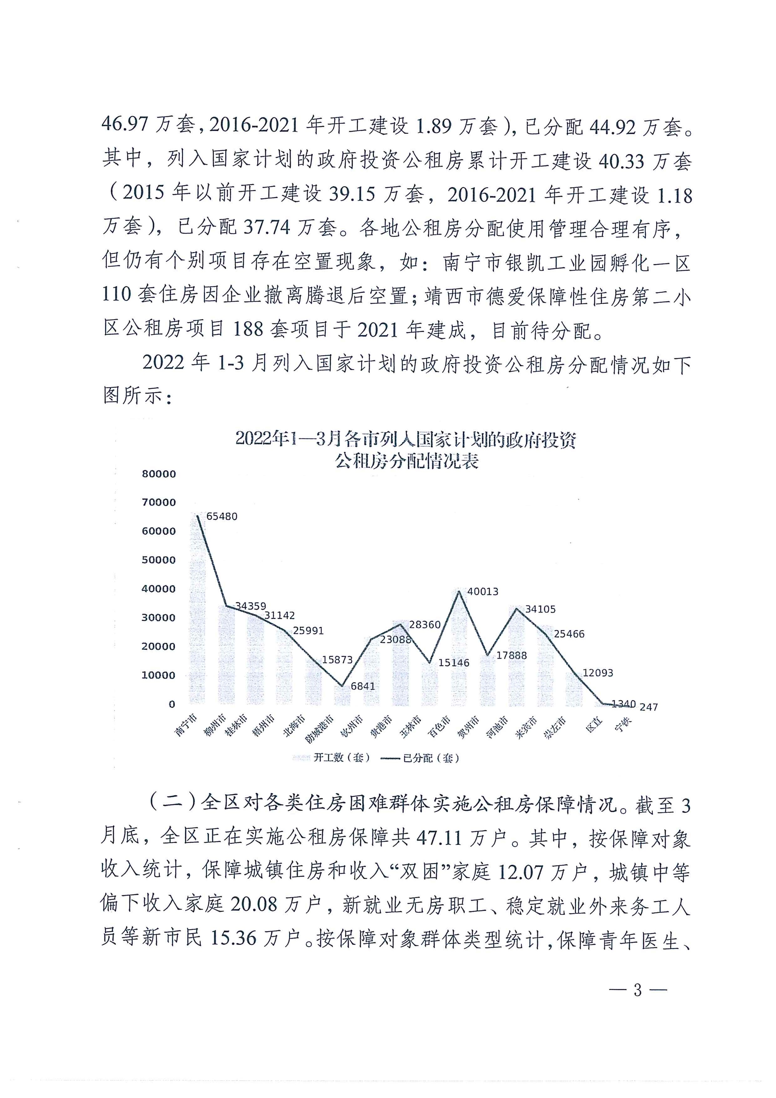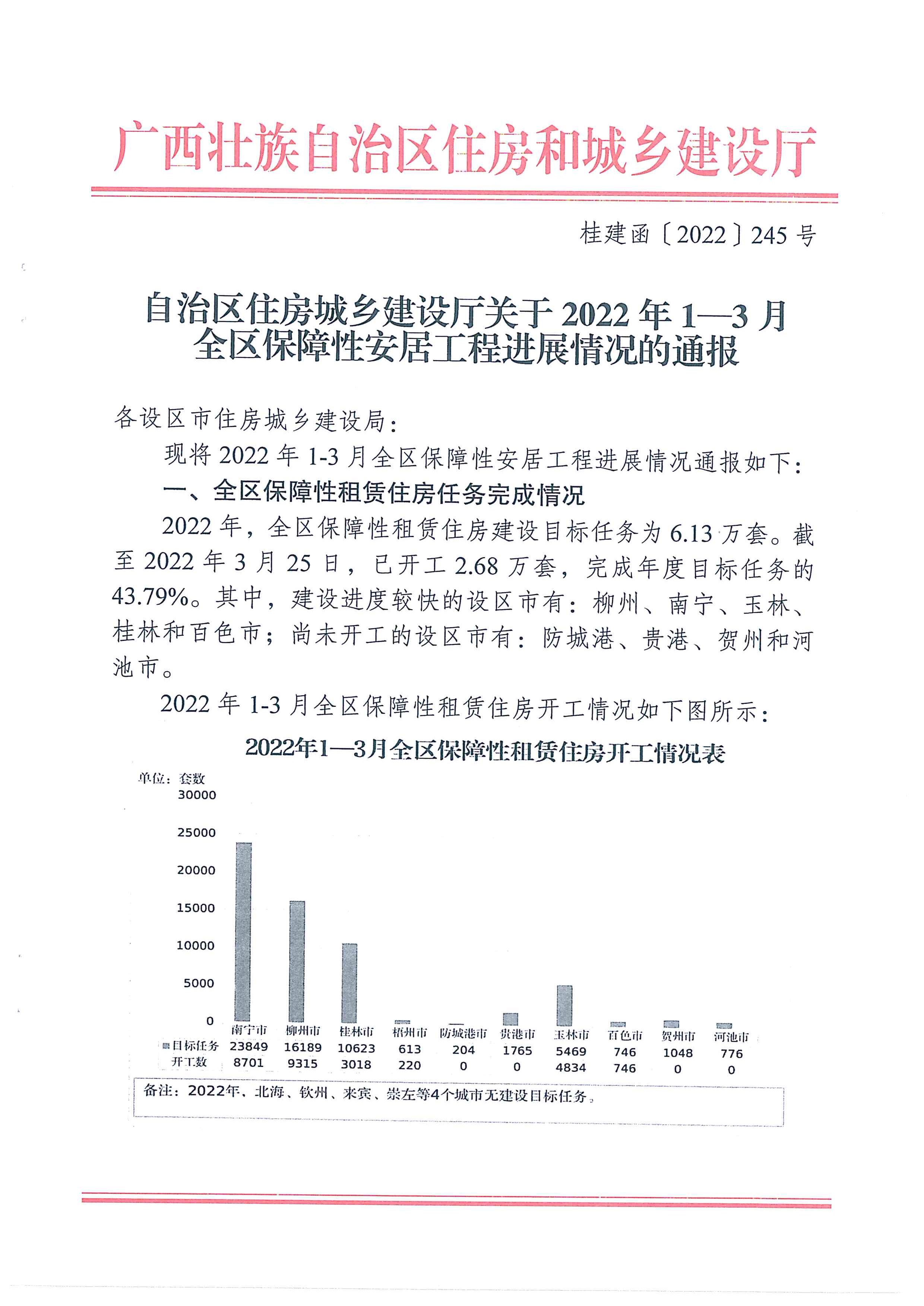 自治区住房城乡建设厅关于2022年1-3月全区保障性安居工程进展情况的通报