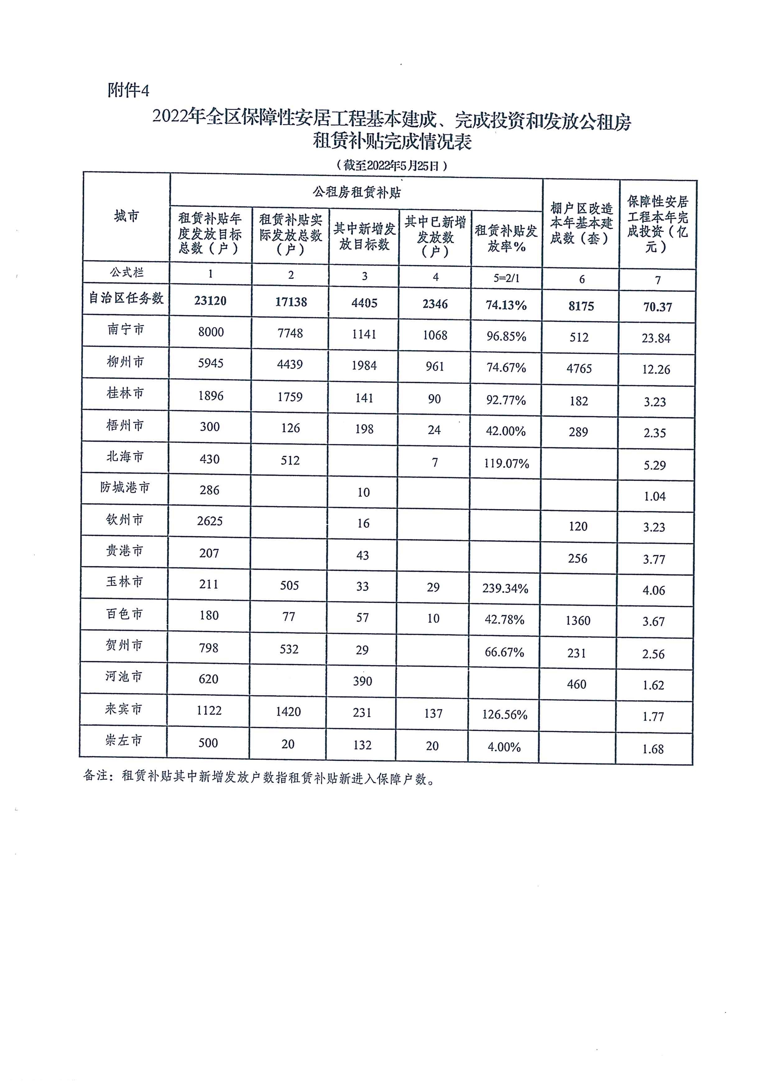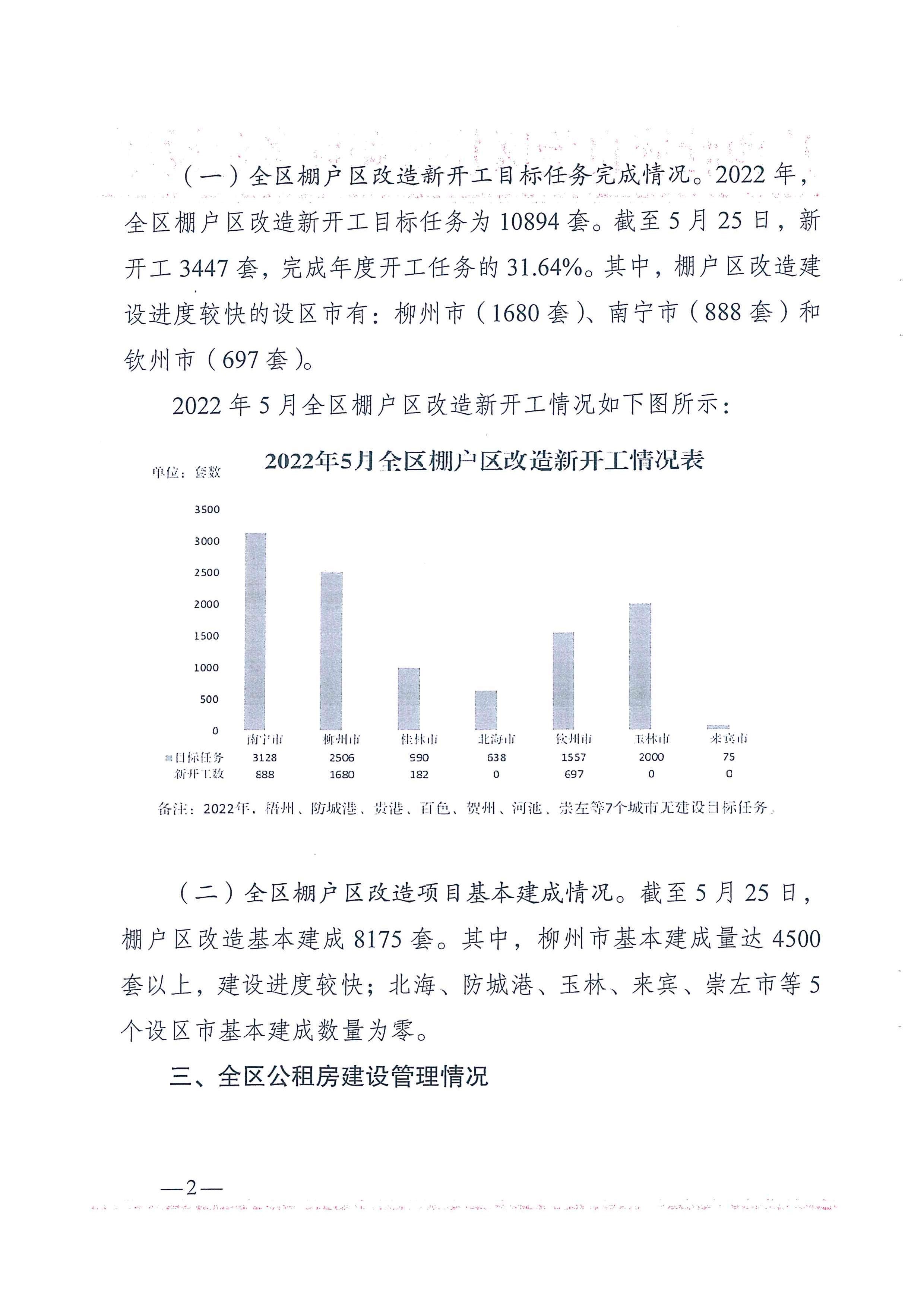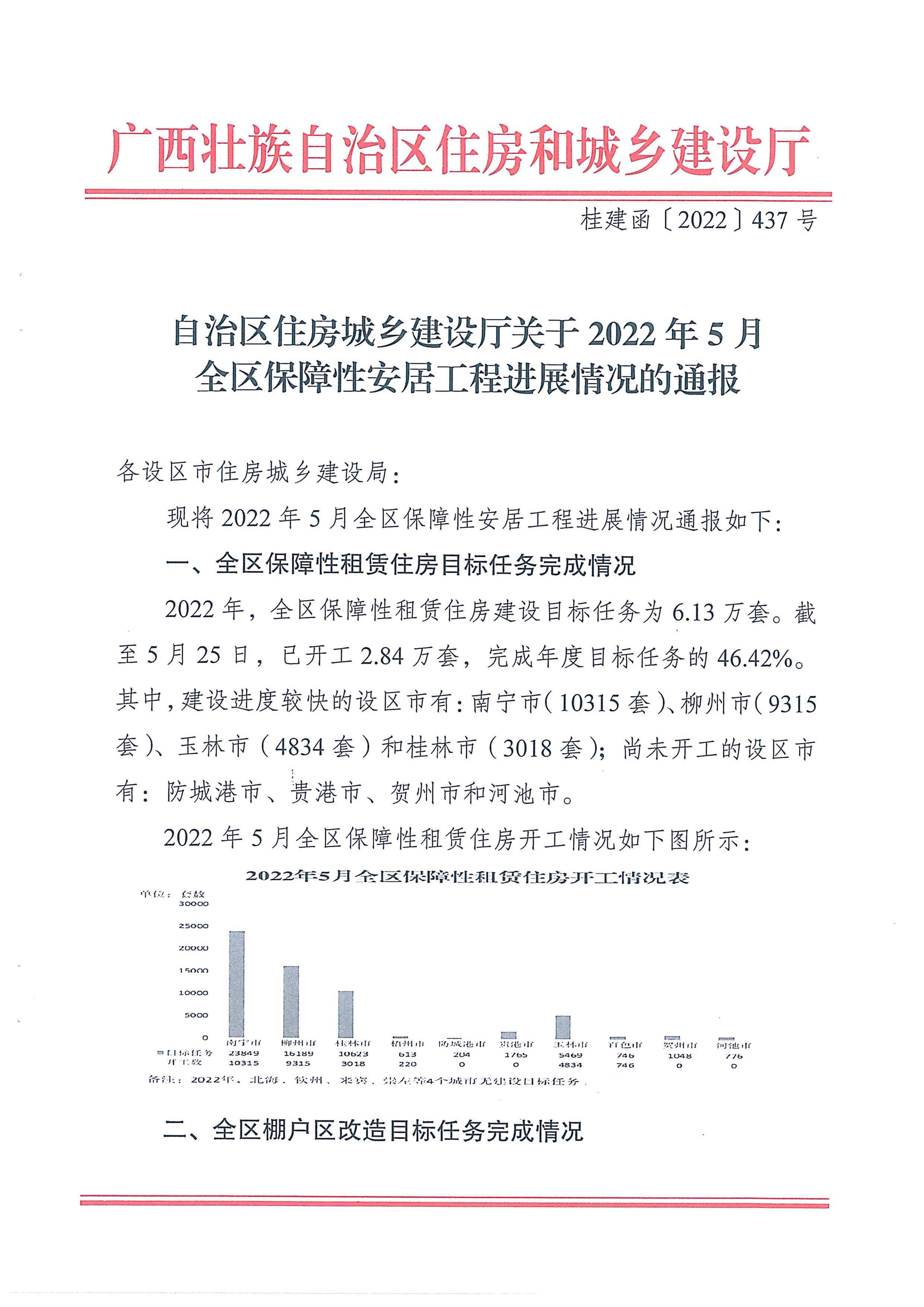 自治区住房城乡建设厅关于2022年5月全区保障性安居工程进展情况的通报