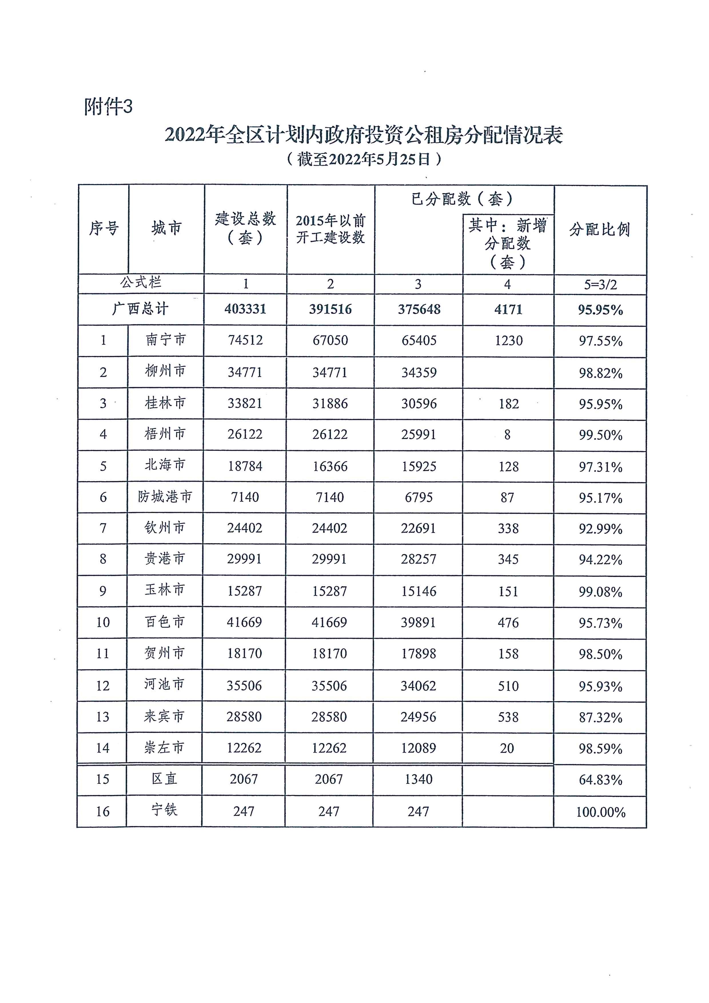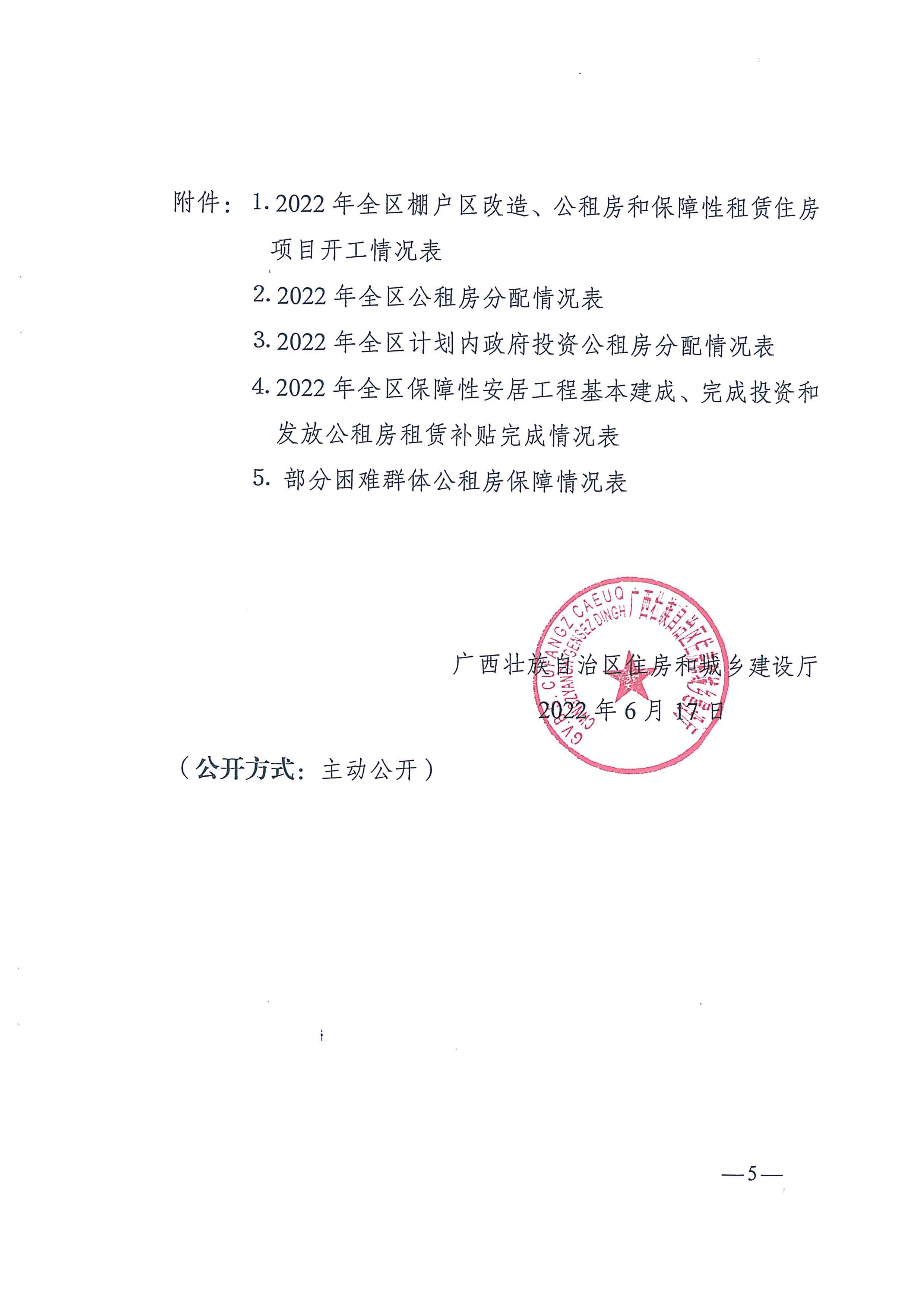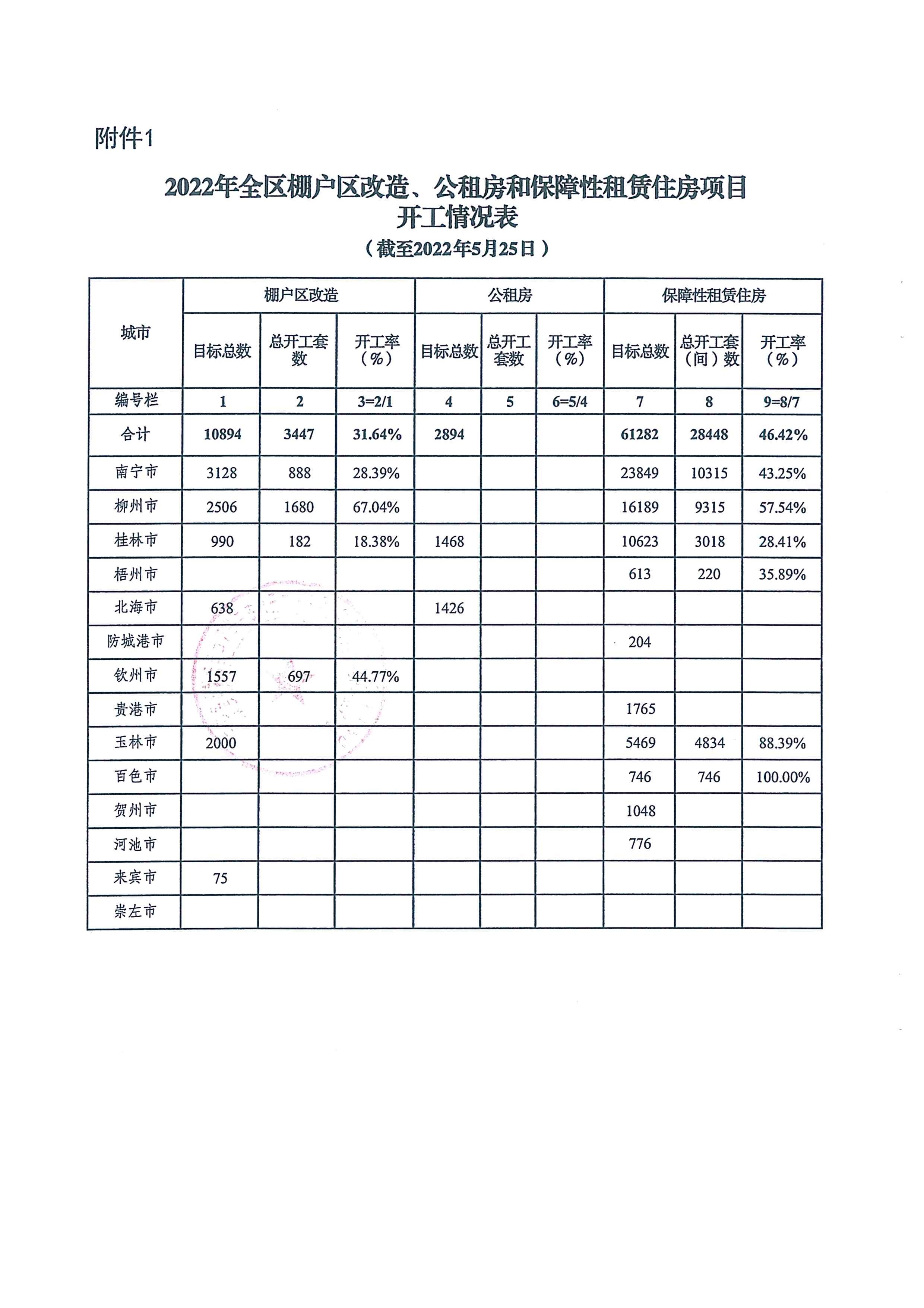 自治区住房城乡建设厅关于2022年5月全区保障性安居工程进展情况的通报