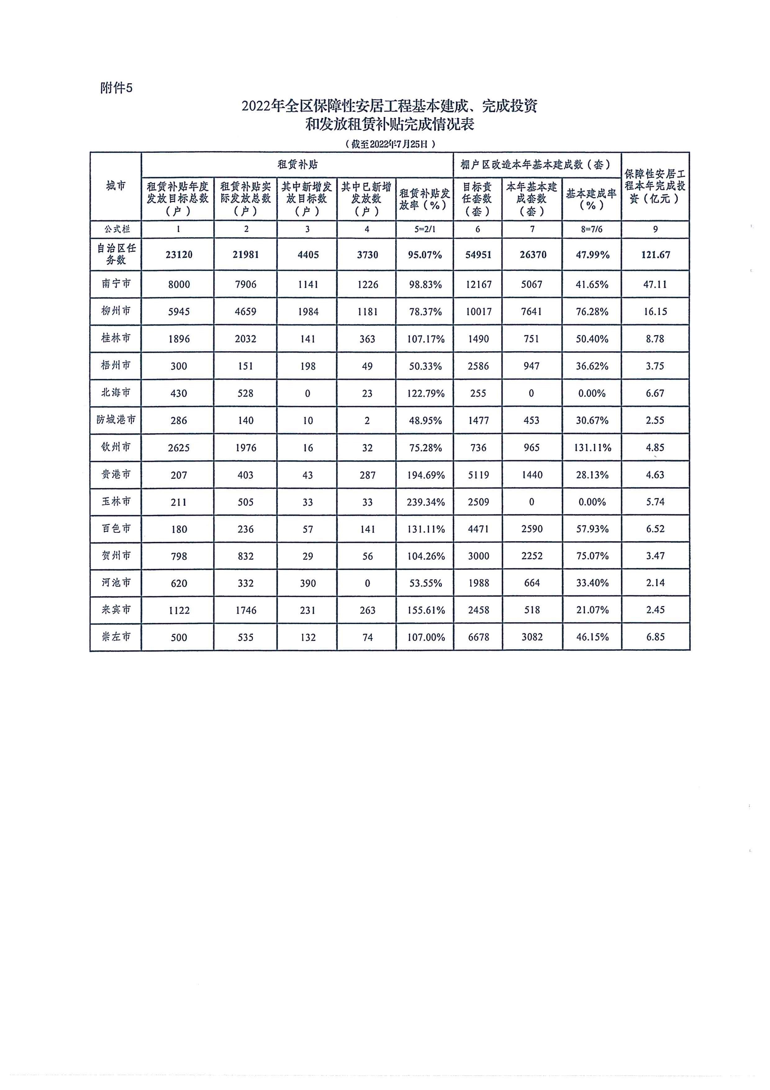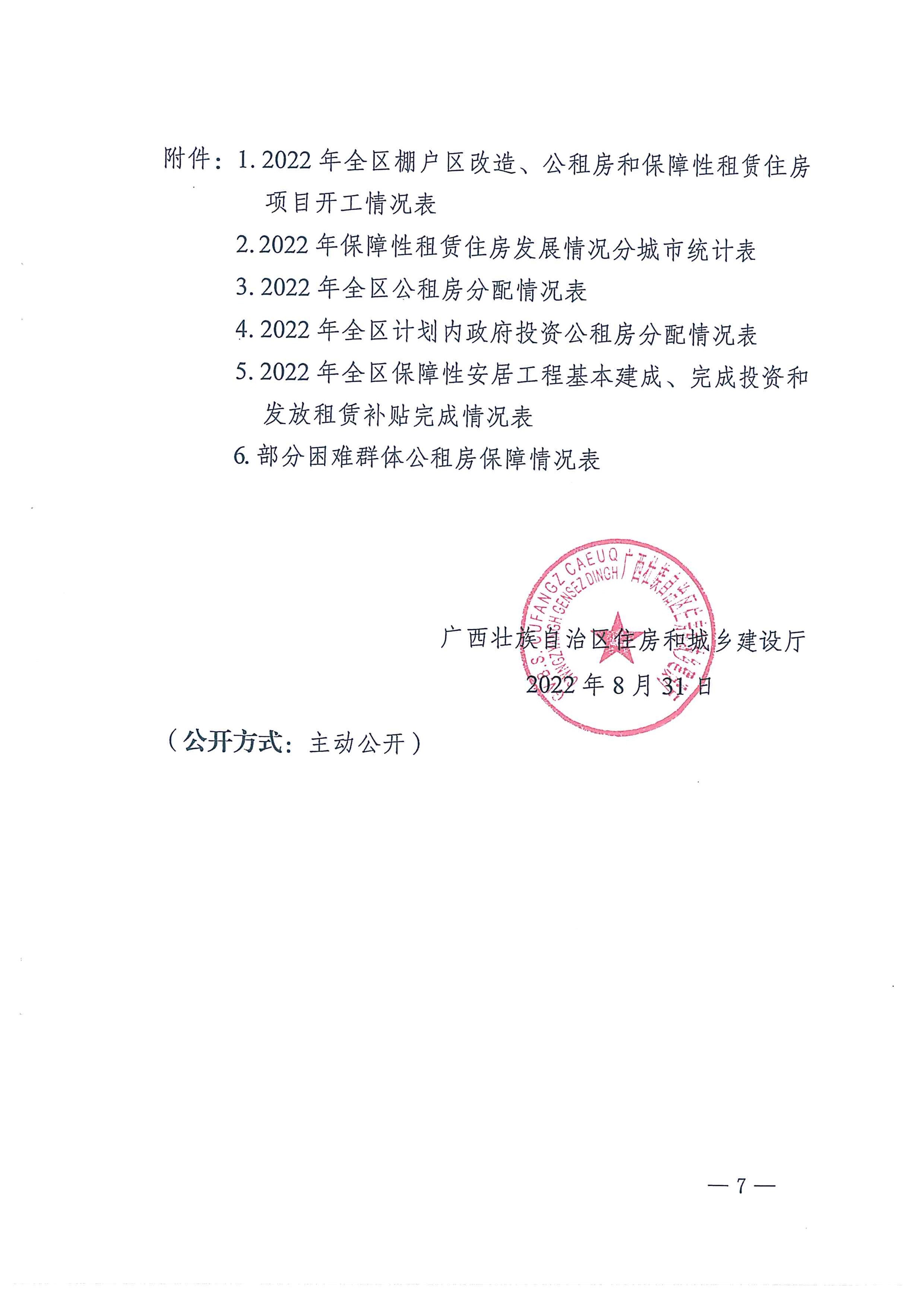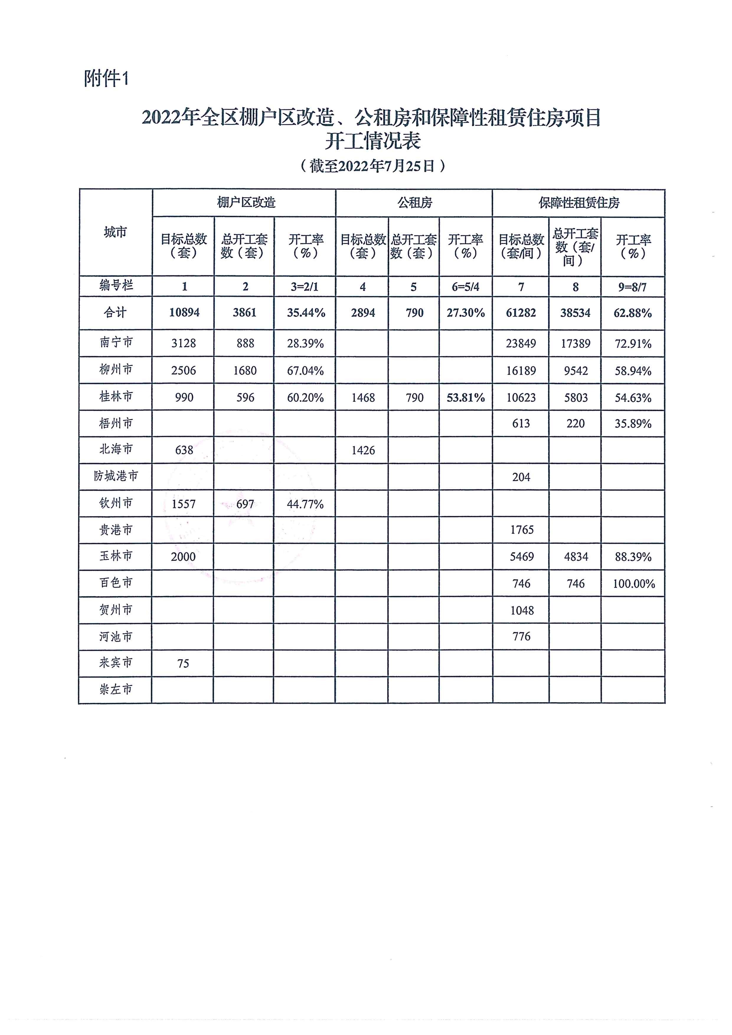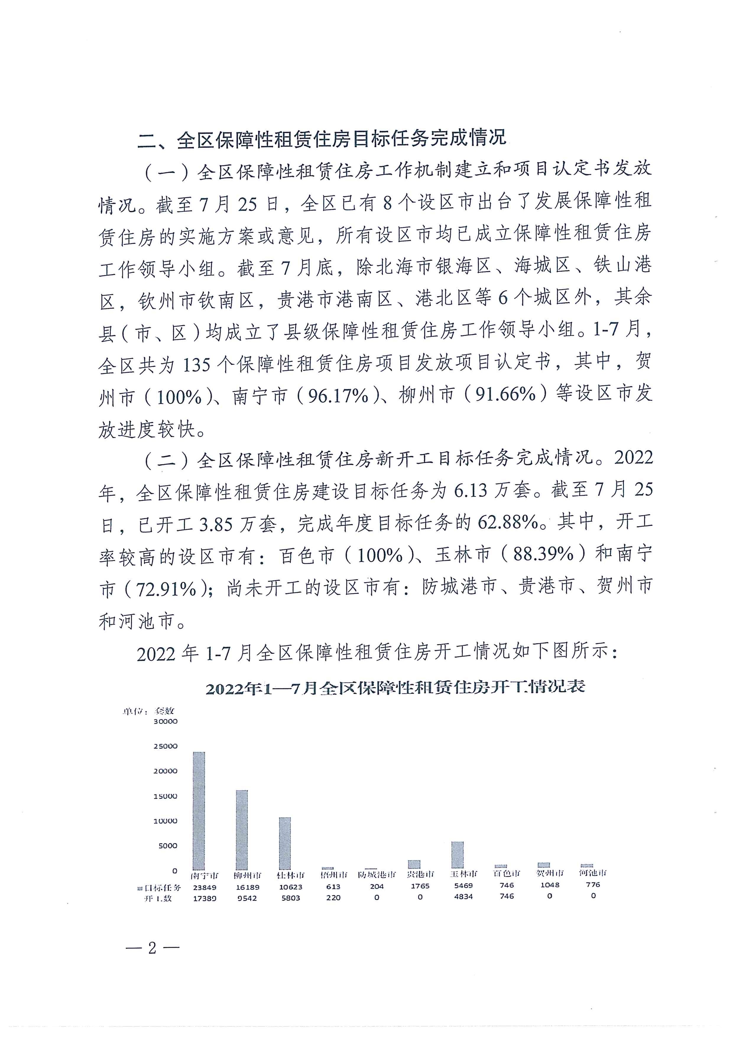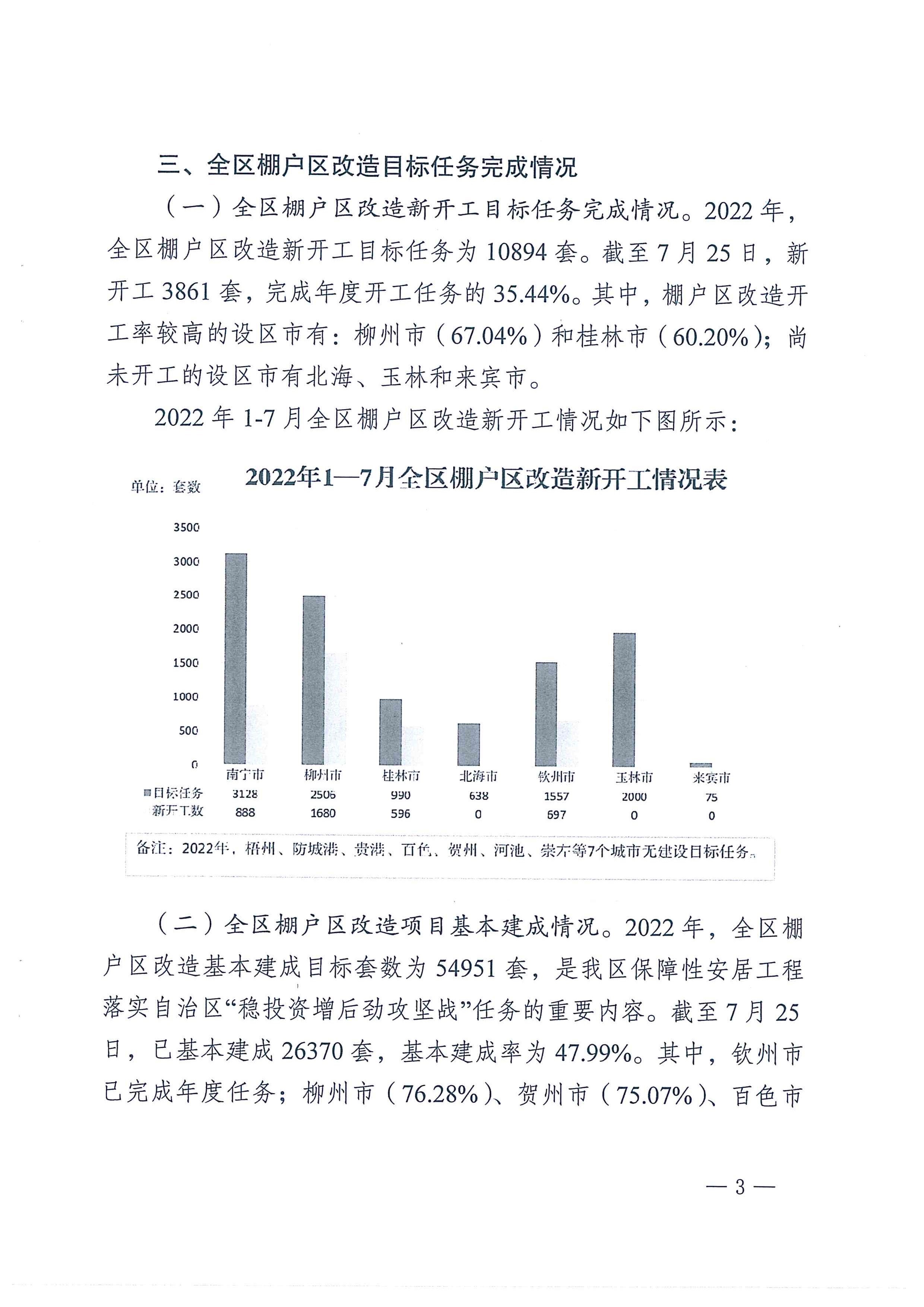 自治区住房城乡建设厅关于2022年7月全区保障性安居工程进展情况的通报