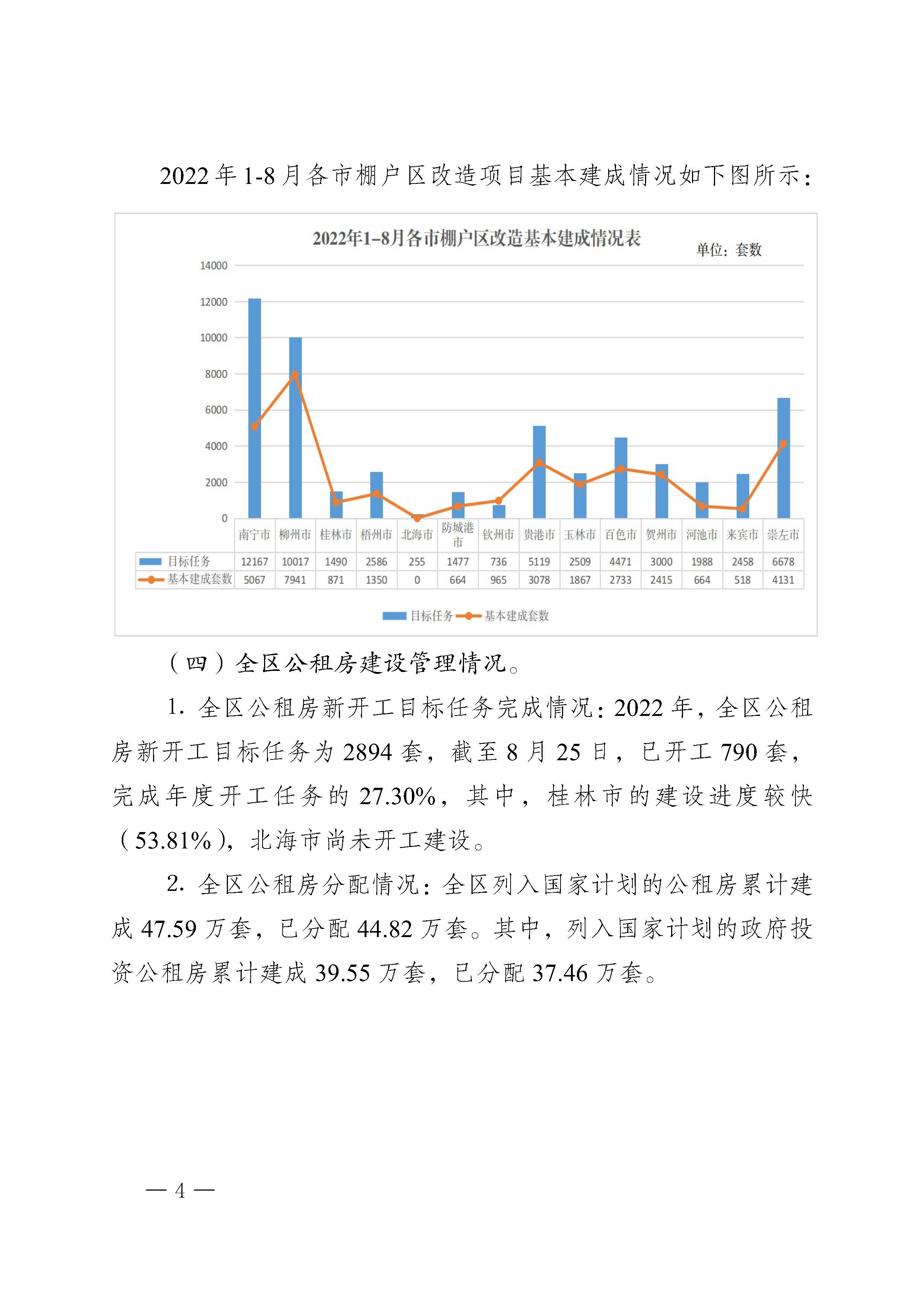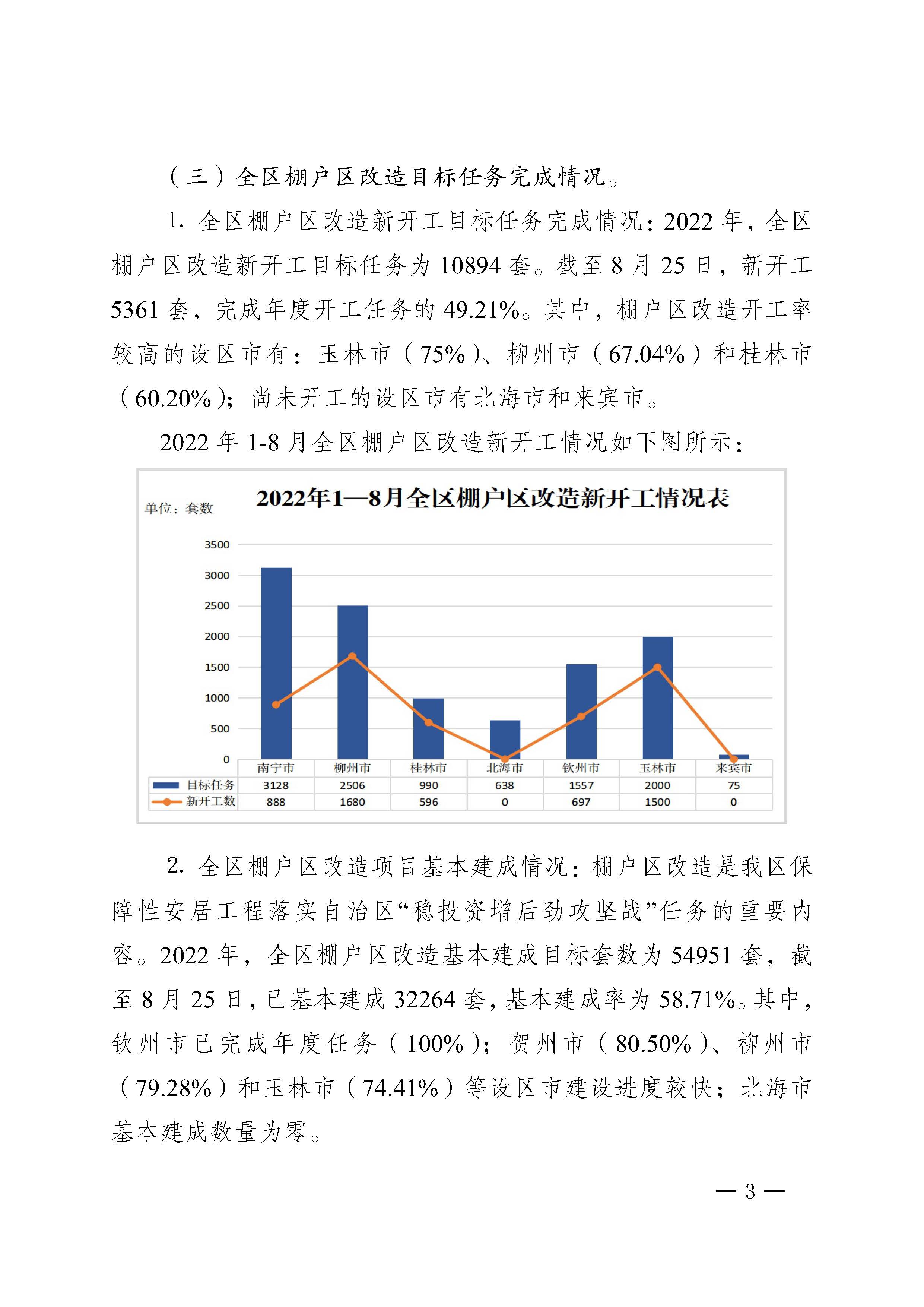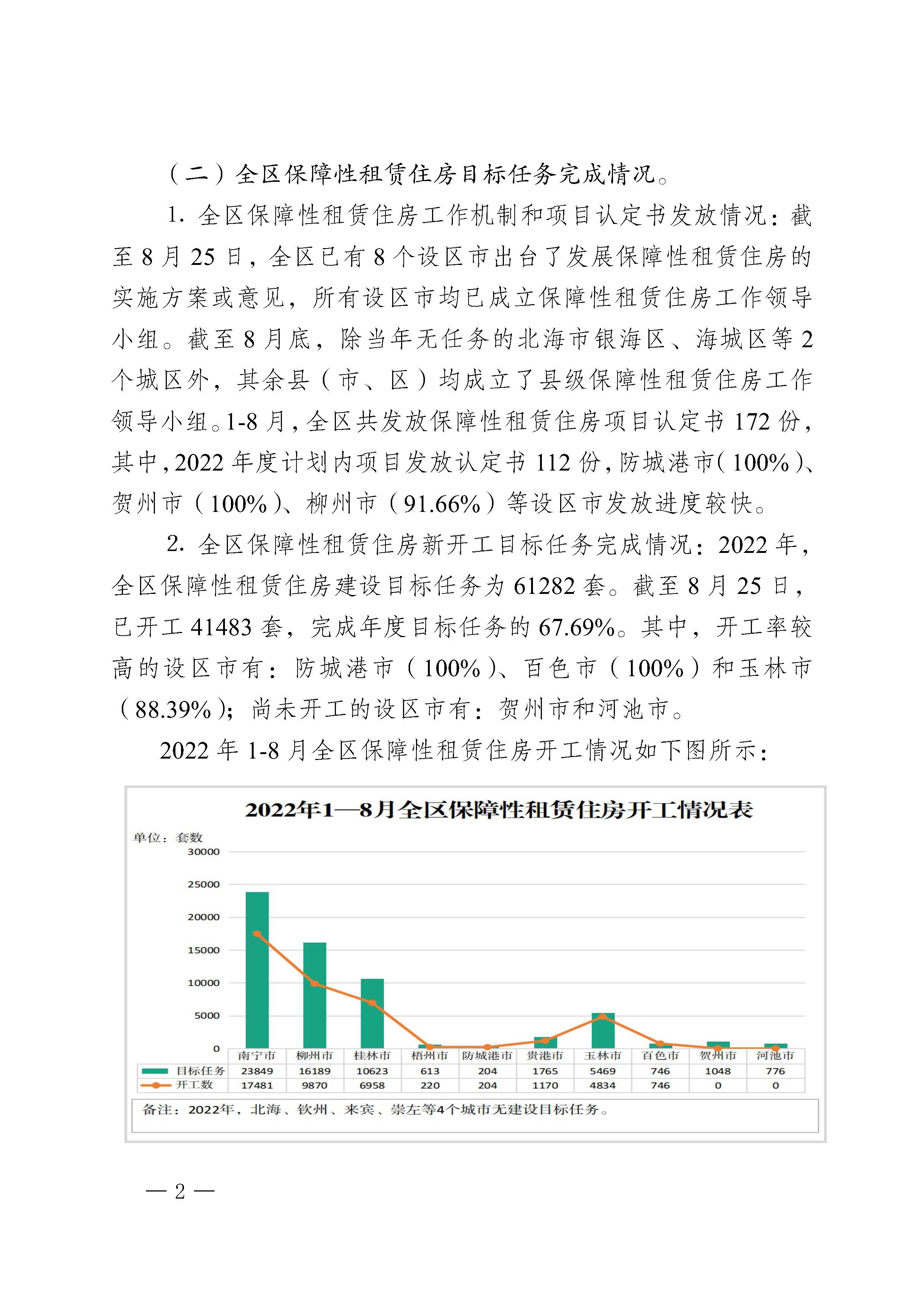自治区住房城乡建设厅关于2022年8月全区保障性安居工程进展情况的通报