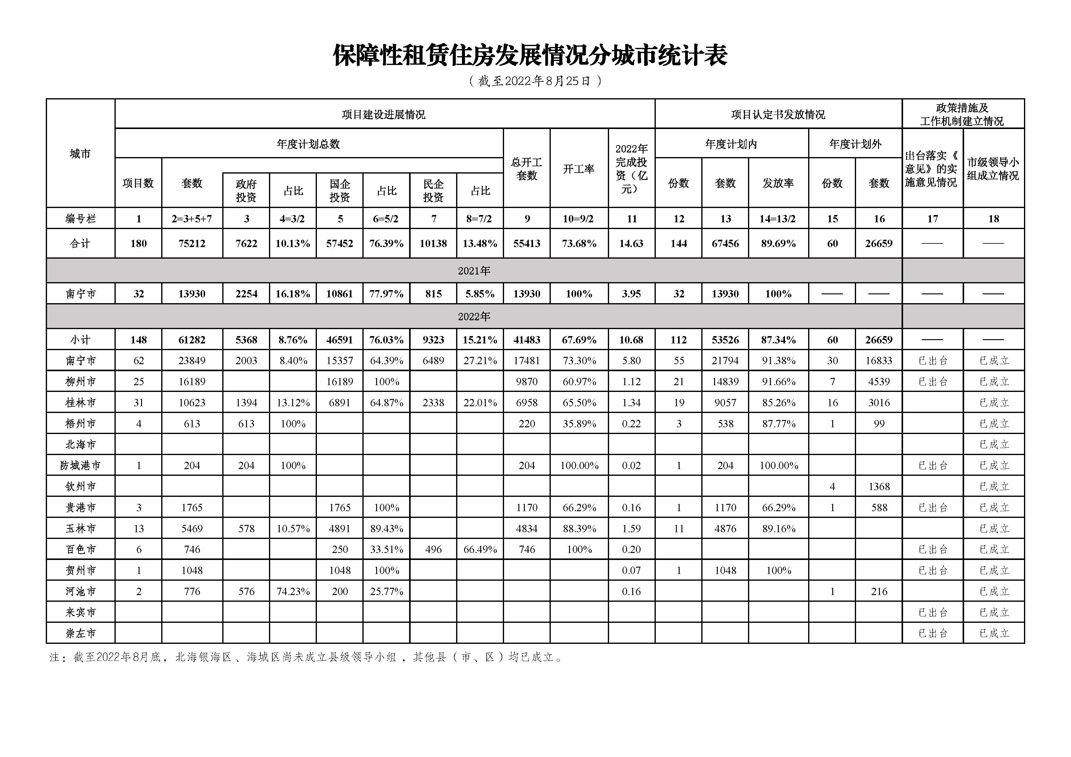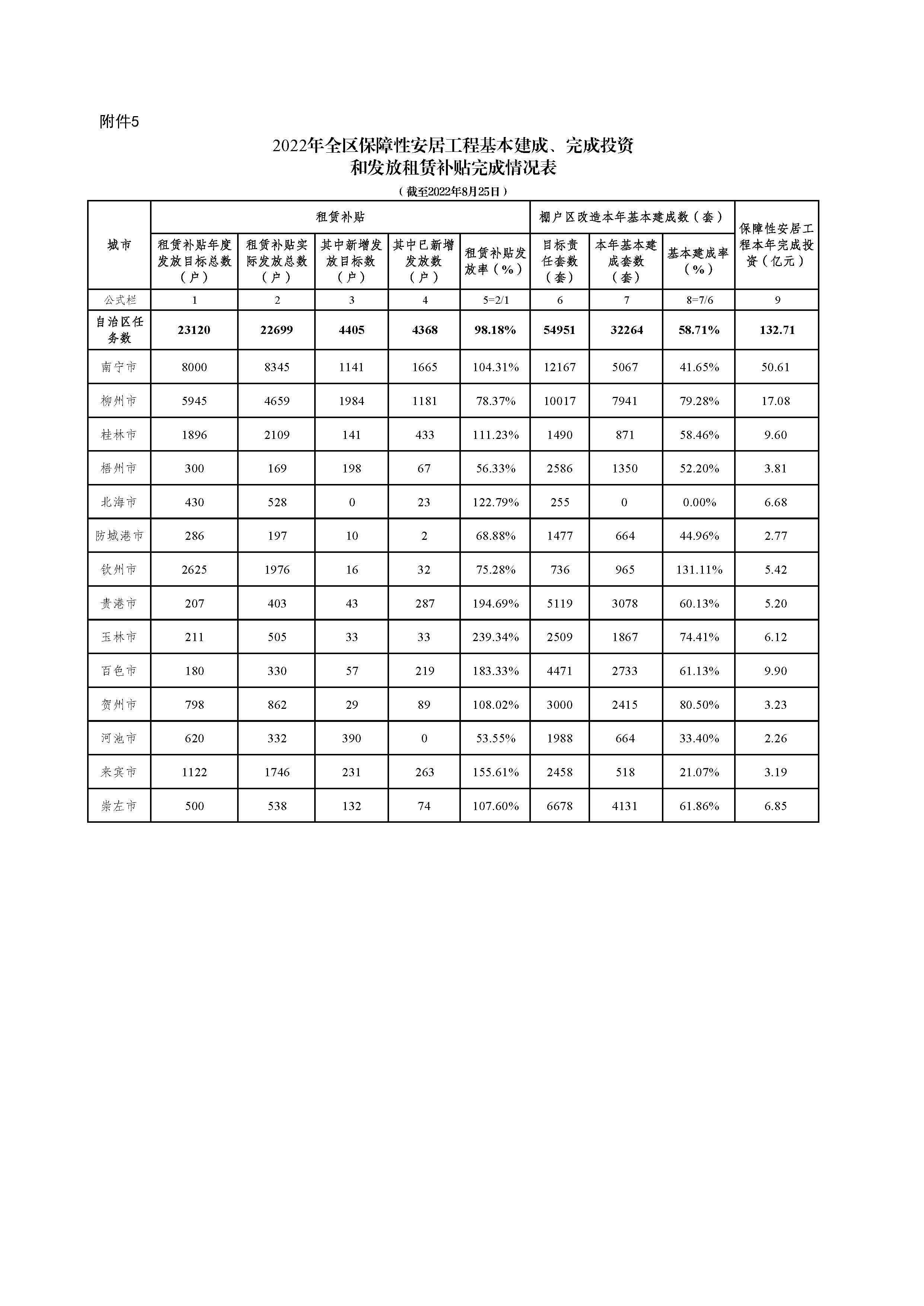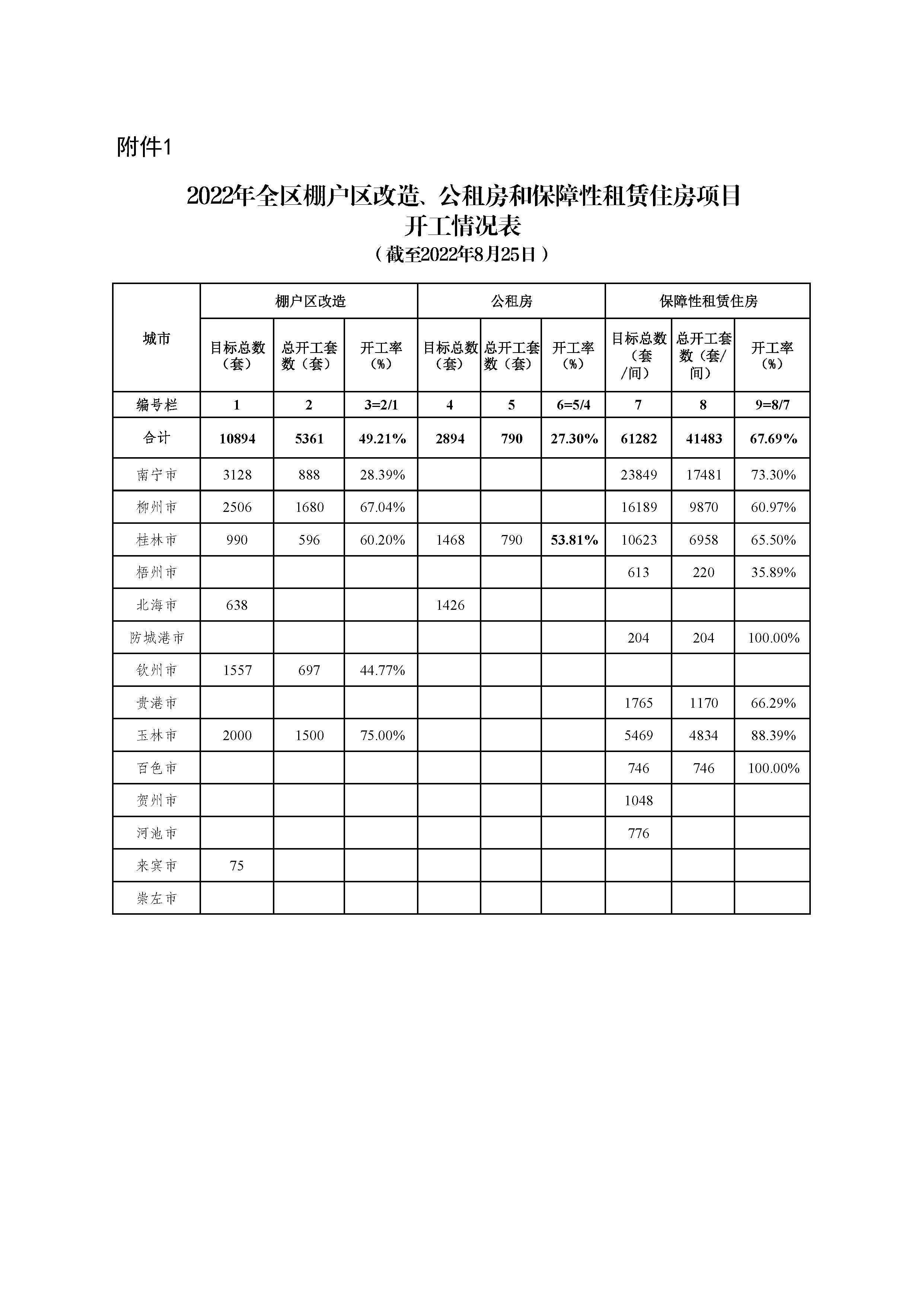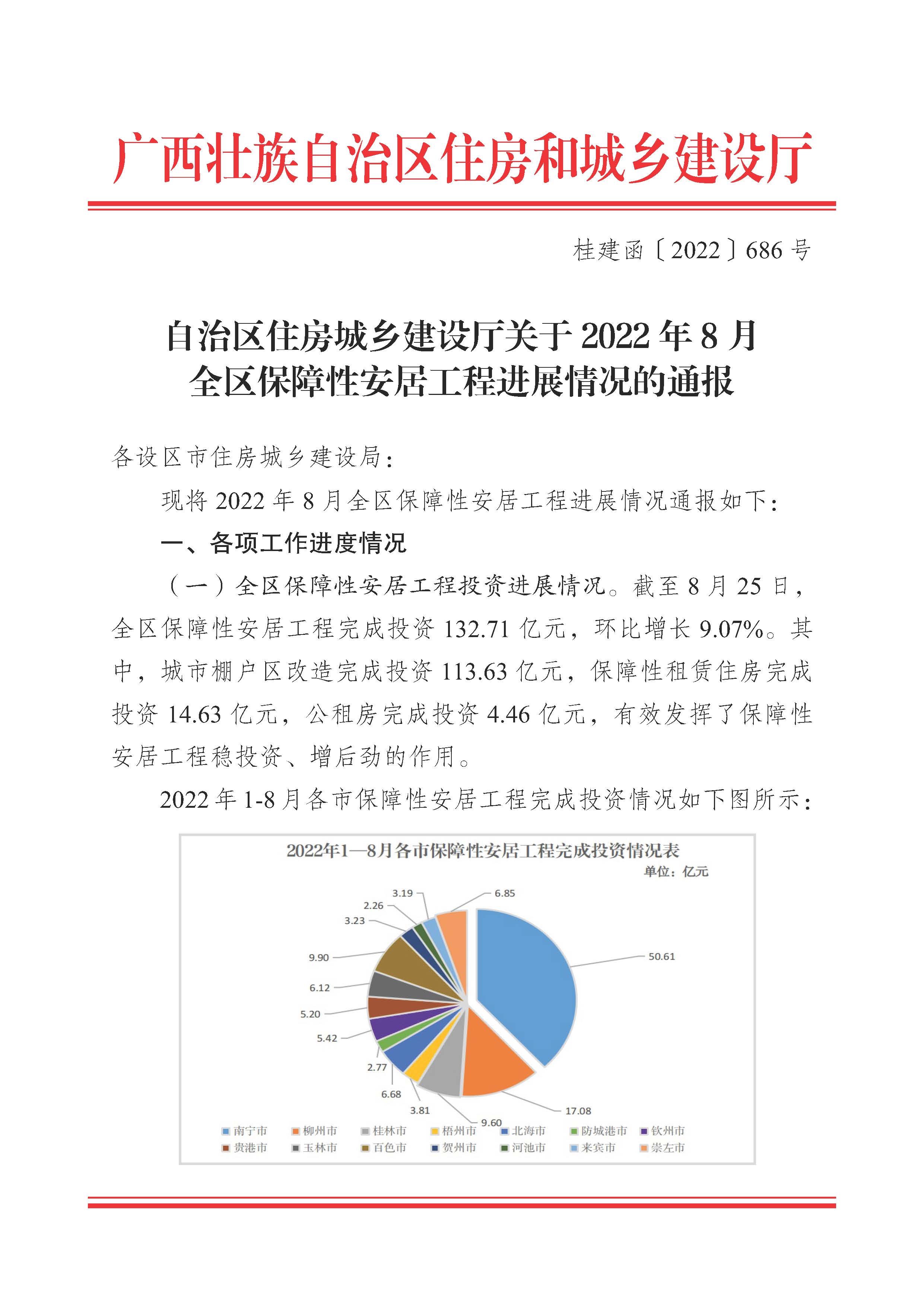 自治区住房城乡建设厅关于2022年8月全区保障性安居工程进展情况的通报