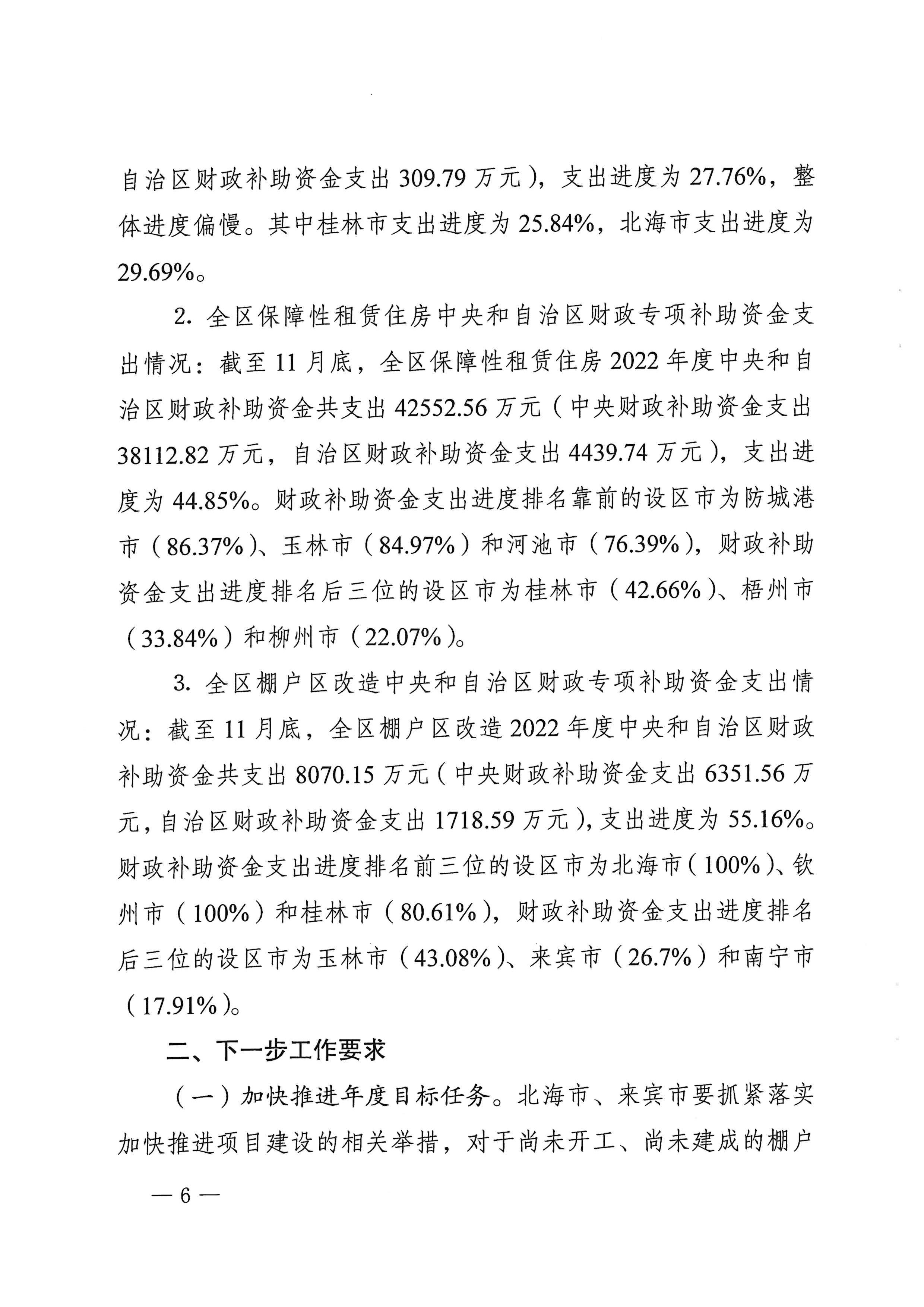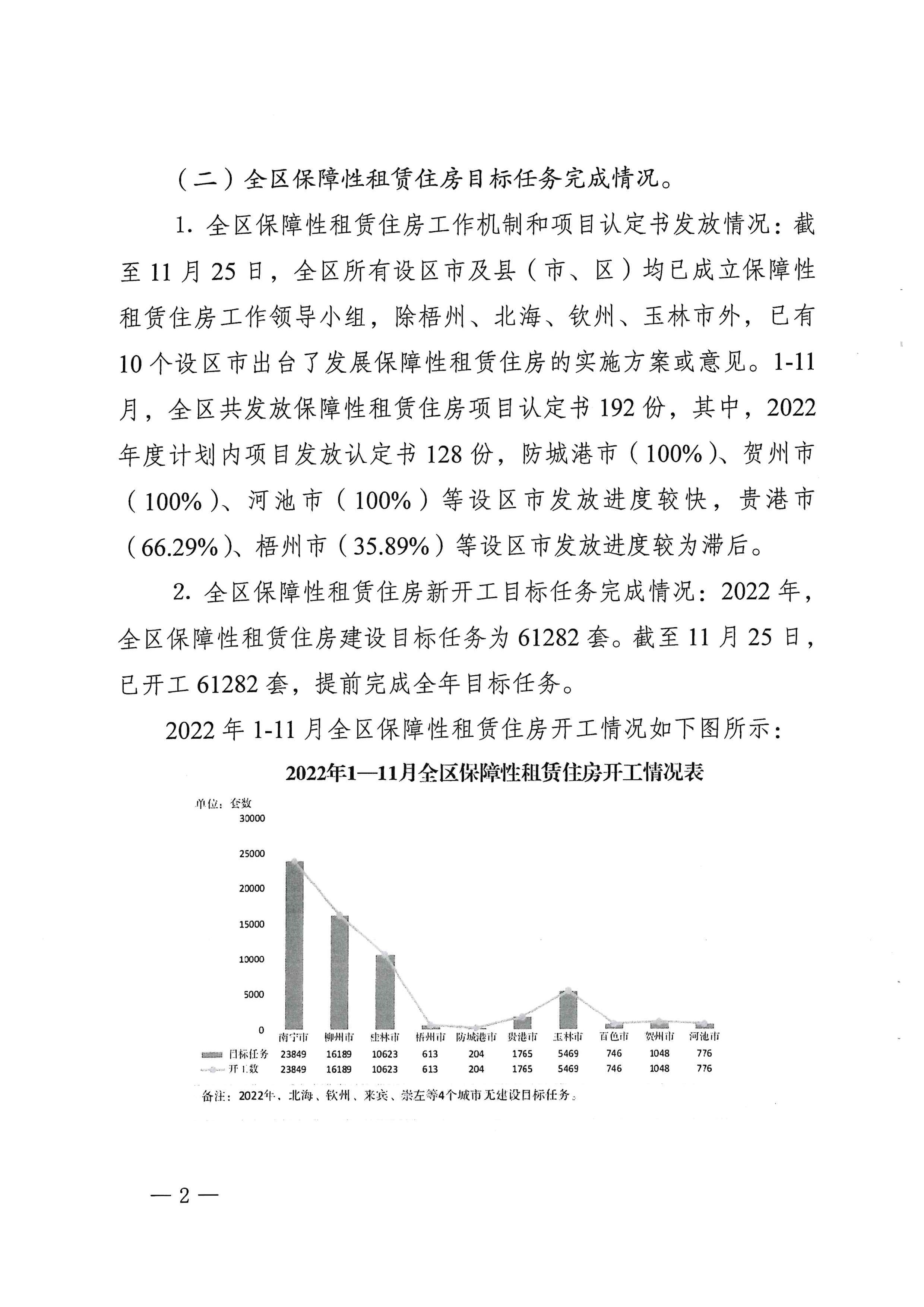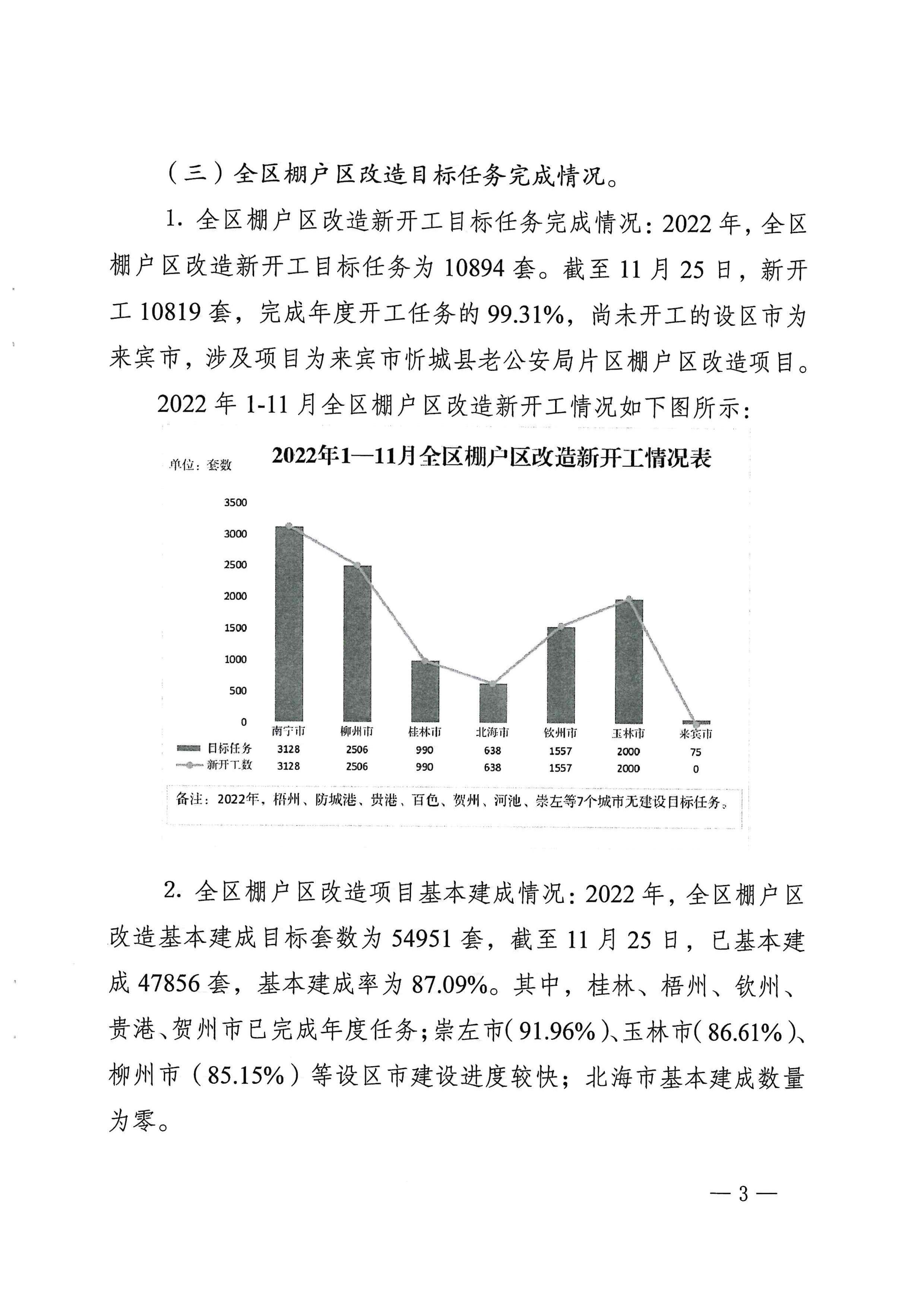 自治区住房城乡建设厅关于2022年11月全区保障性安居工程进展情况的通报