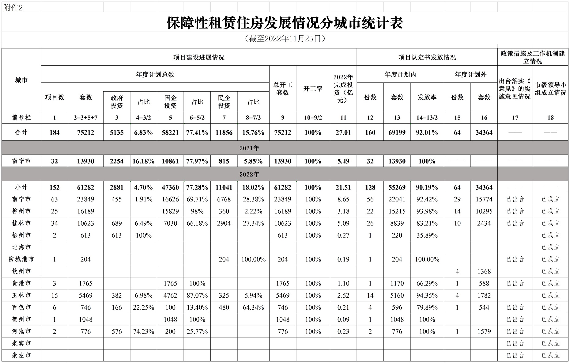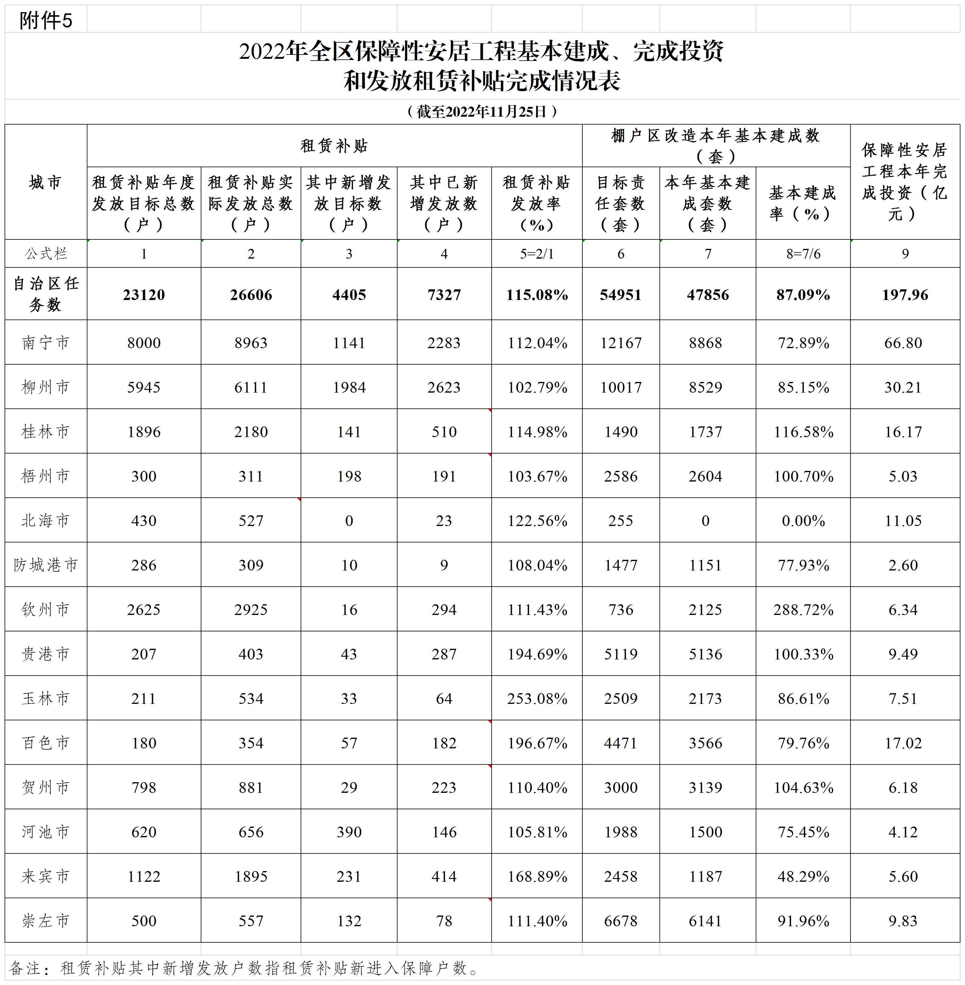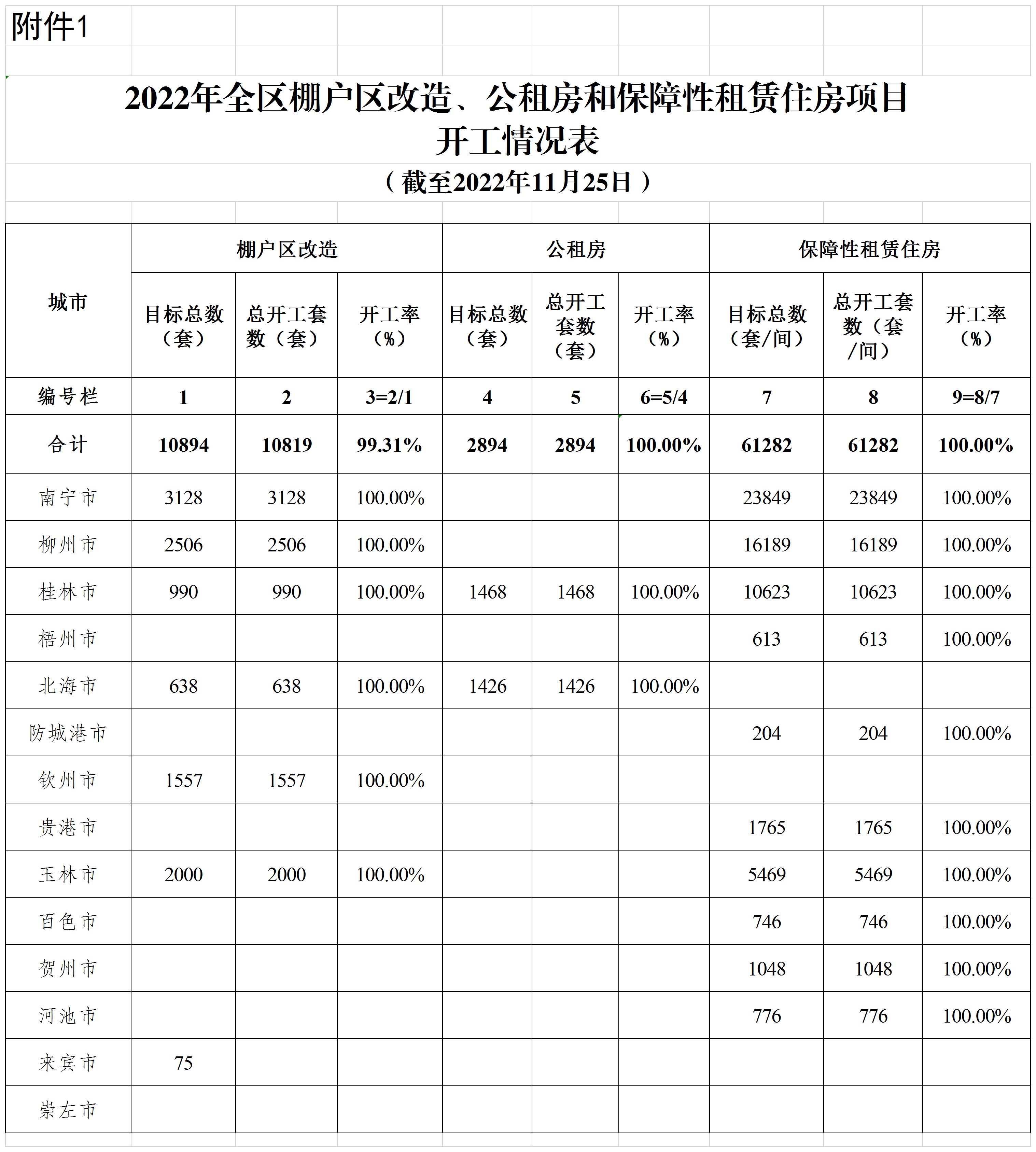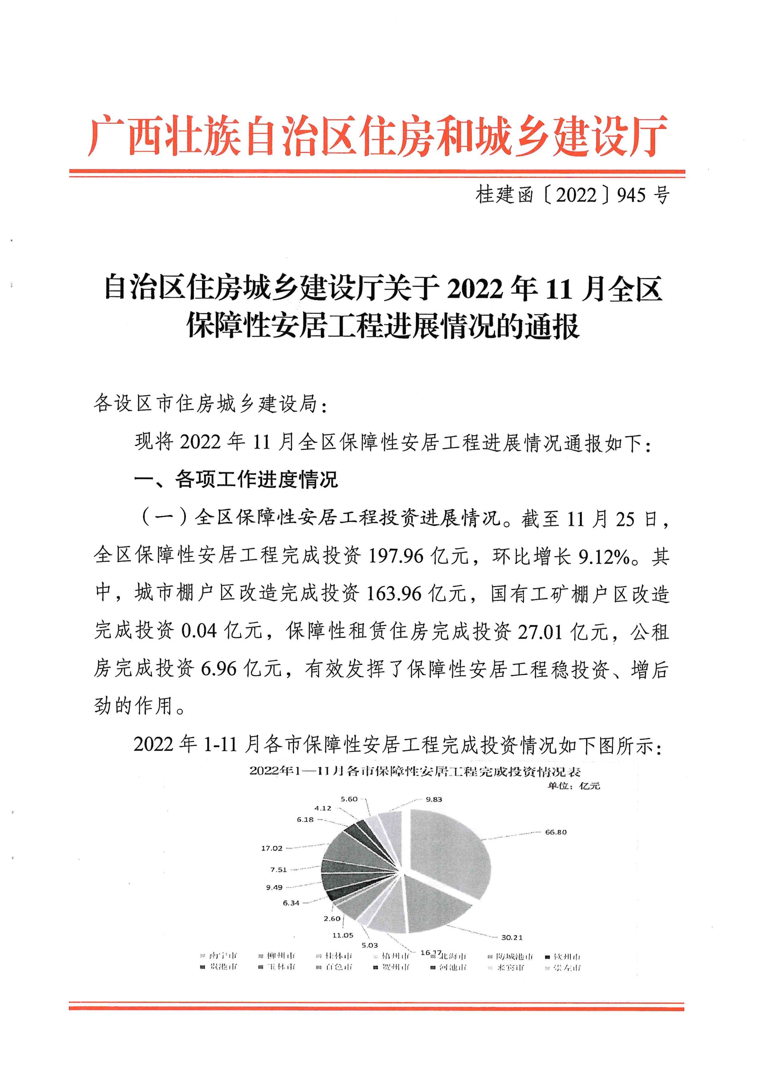 自治区住房城乡建设厅关于2022年11月全区保障性安居工程进展情况的通报