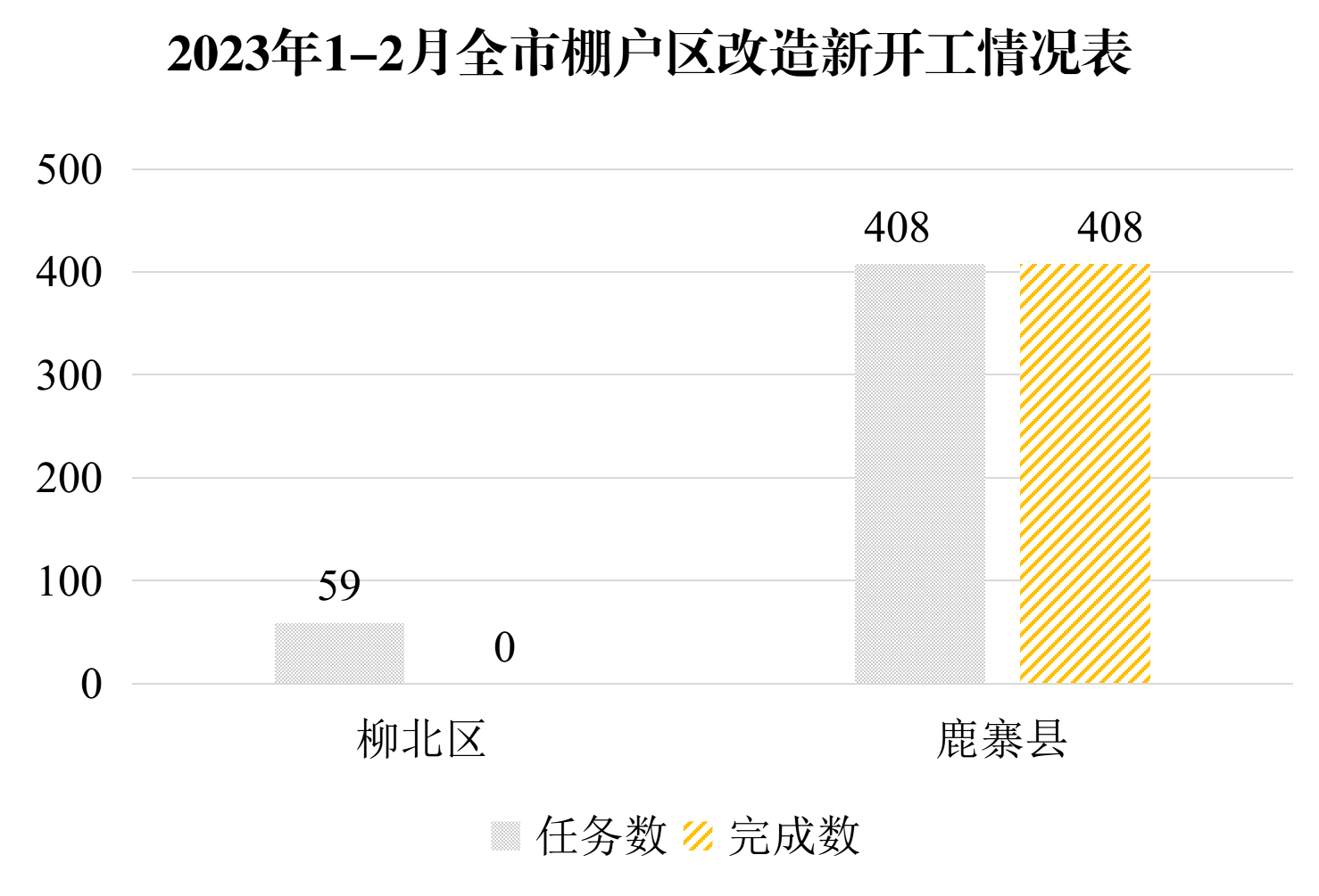2023年1-2月全市棚户区改造新开工情况如下图所示: