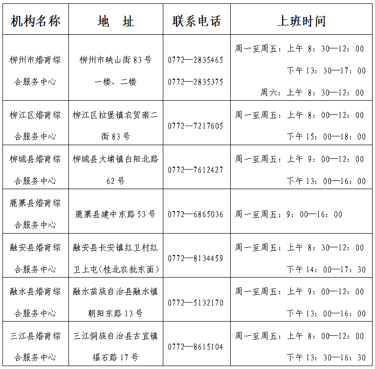 享受免费婚前医学检查、免费孕前优生健康检查的群众需携带身份证、户口簿,可在柳州市任意一家婚育综合服务中心享受免费服务。
