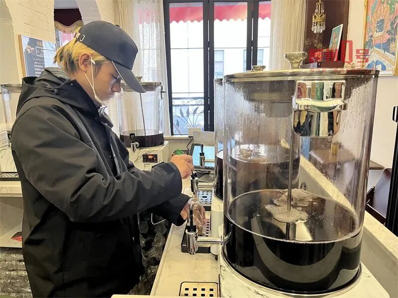 店主何女士表示,清肝明目、补气益血的茶饮销量较高,且消费者的年龄层分布广泛,除了平时热衷奶茶的年轻顾客会来尝鲜外,还有一些中老年顾客也会来品尝。